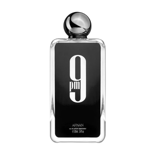 9pm By Afnan, enough to immediately awaken your deepest senses! The fresh notes of bergamot and cinnamon transform into orange blossoms growing warm with amber, vanilla, and patchouli. A scent that captures the imagination and soars high