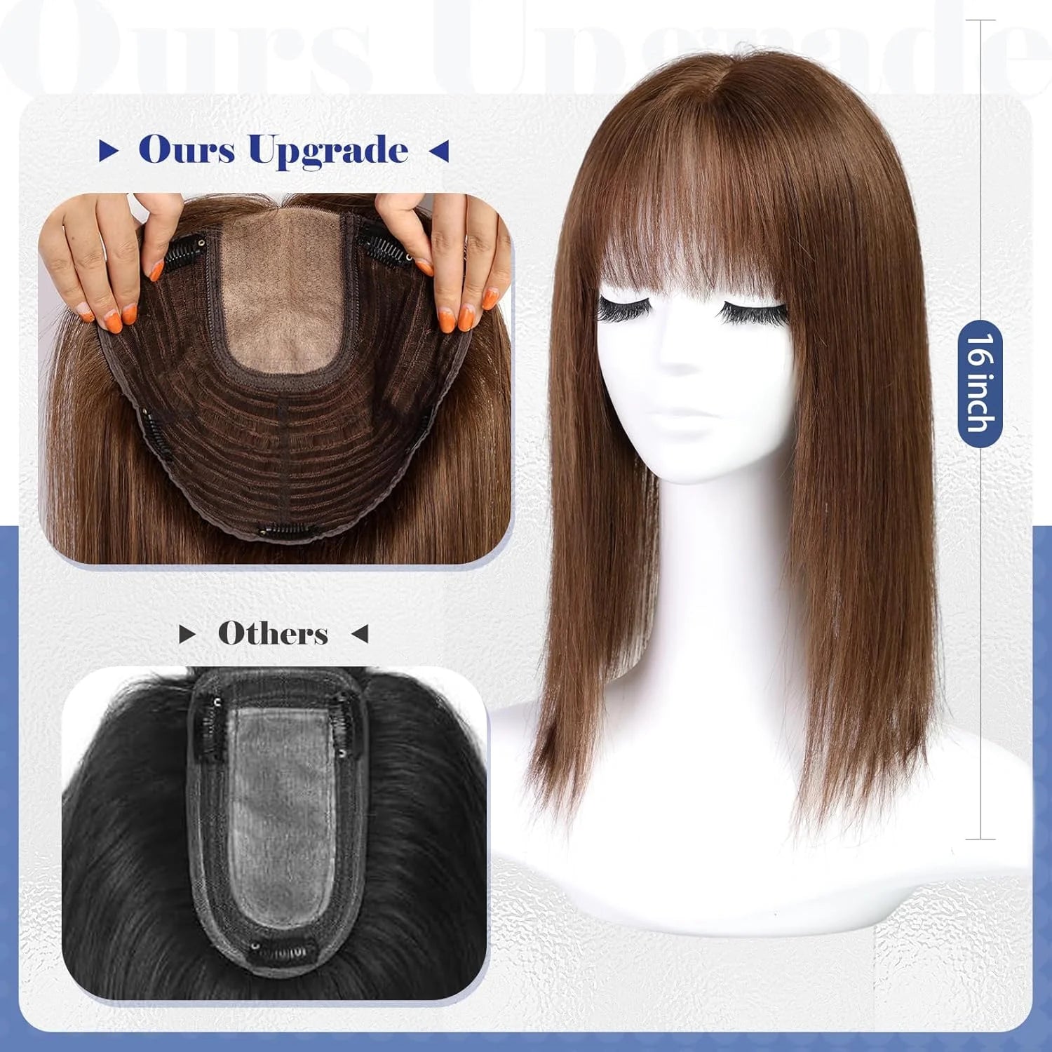 9x9inch Large Base Hair Pieces Dark Brown Human Hair Toppers 16 inch Toppers for Women with Multiple Non-slip Clips