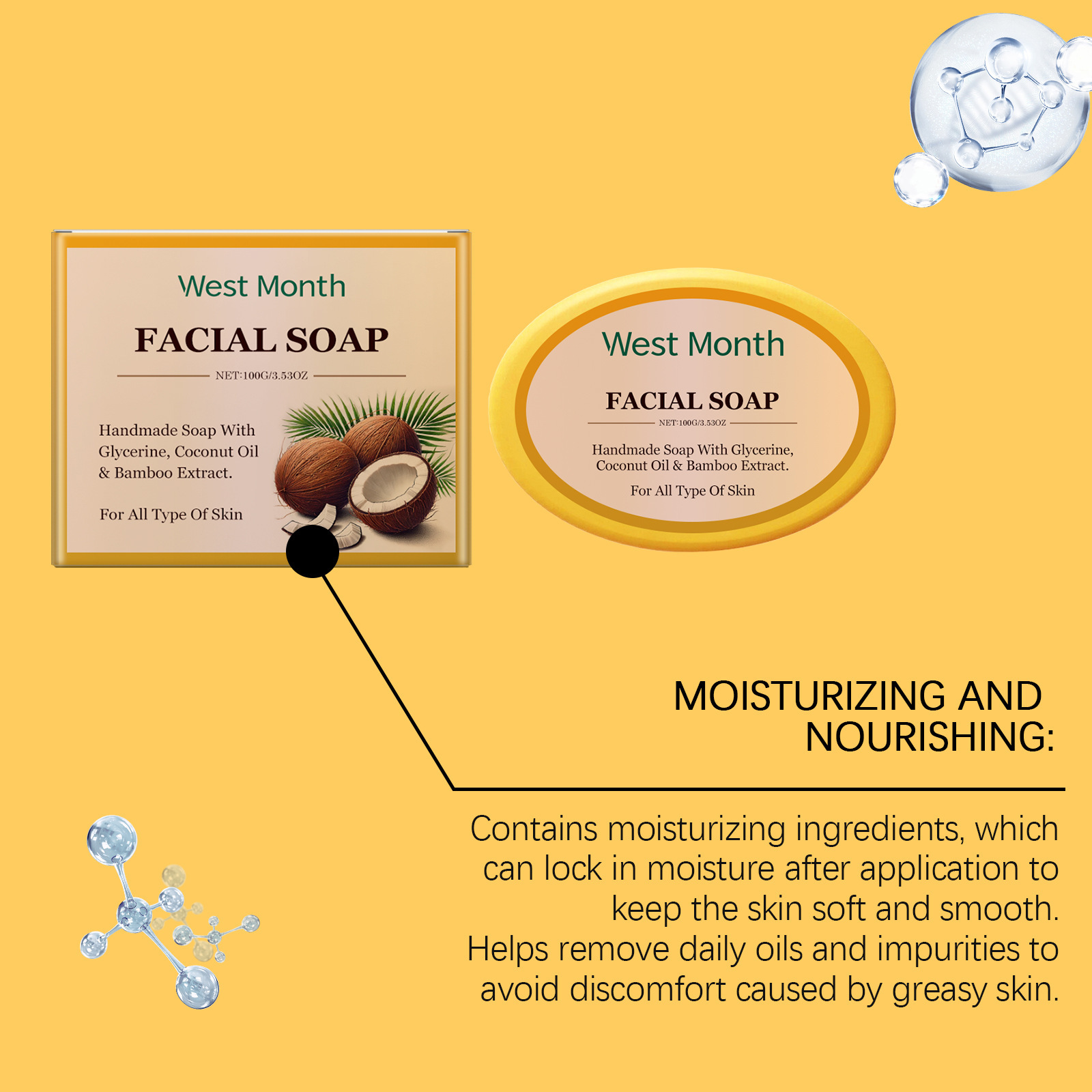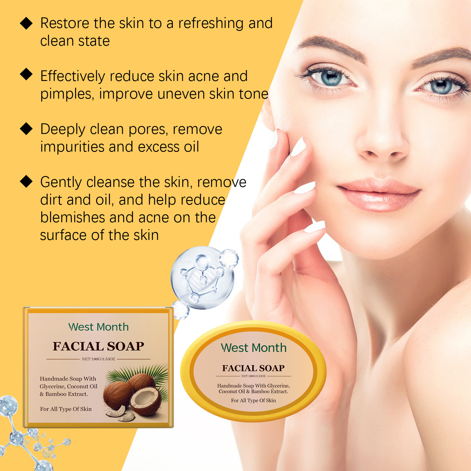 West&Month Acne Remover Soap Cleansing Oil Control Shrink Pores Brightening Smoothing Glow Moisturizing Anti Blackhead Pimples Facial Soap