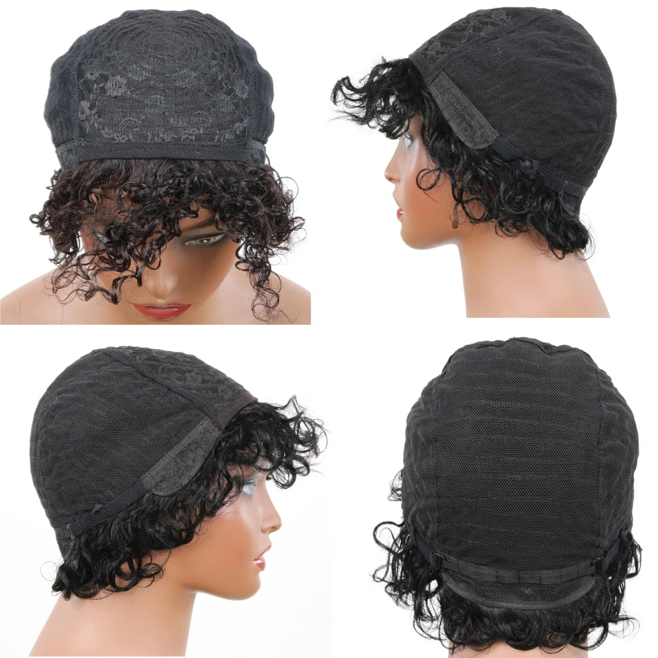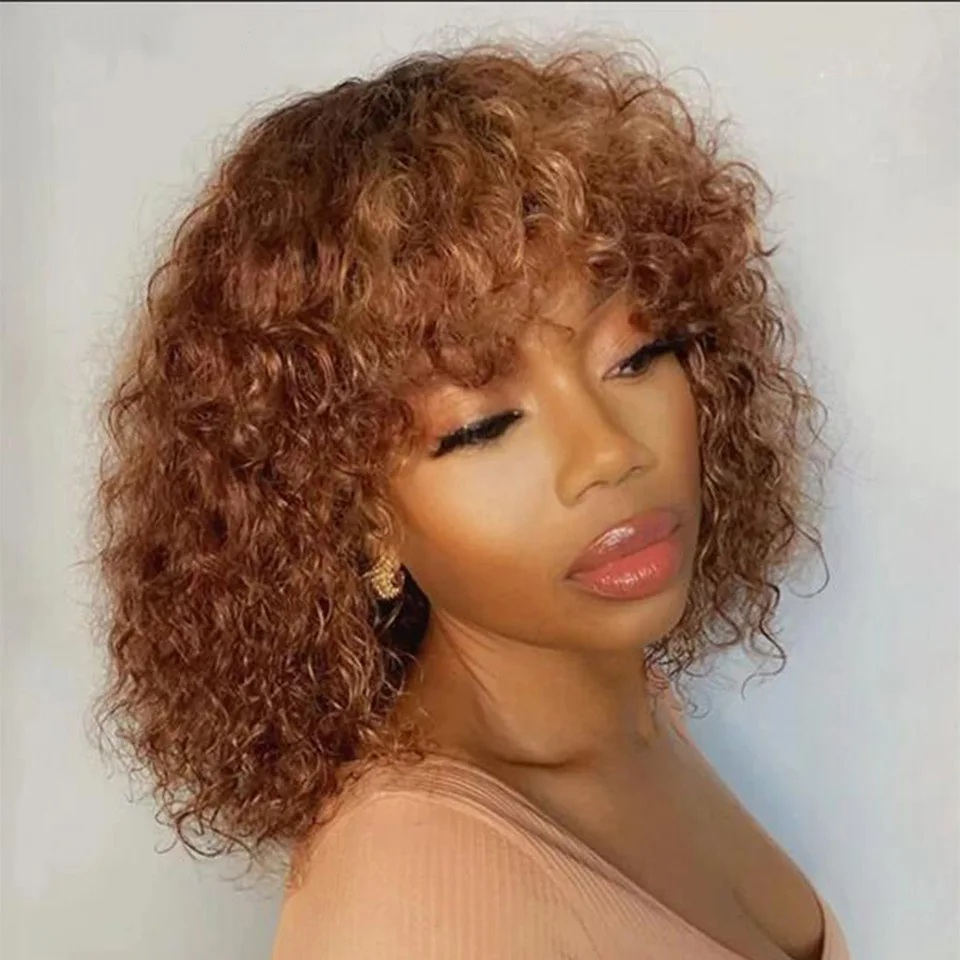 Afro Kinky Curly Human Hair Wig With Bangs Brazilian Hair Human Natural Afro Wig 180% Density Human Hair Wigs For Women On Sale