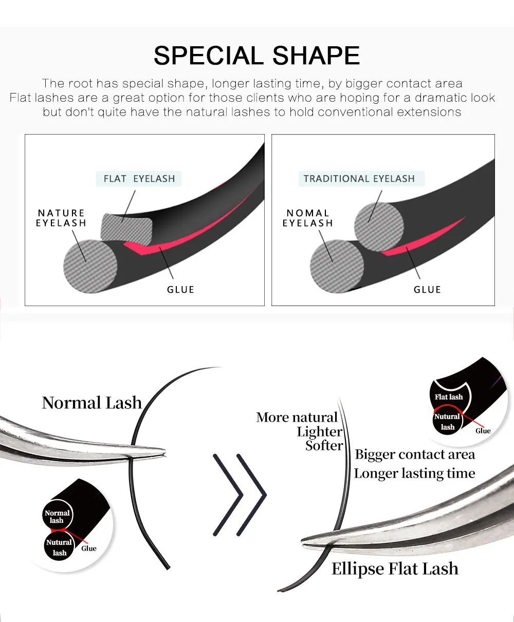 ellipse flat lash, flat lash extension,ellipse lashes,individual eyelash extension,ellipse flat matte lashes