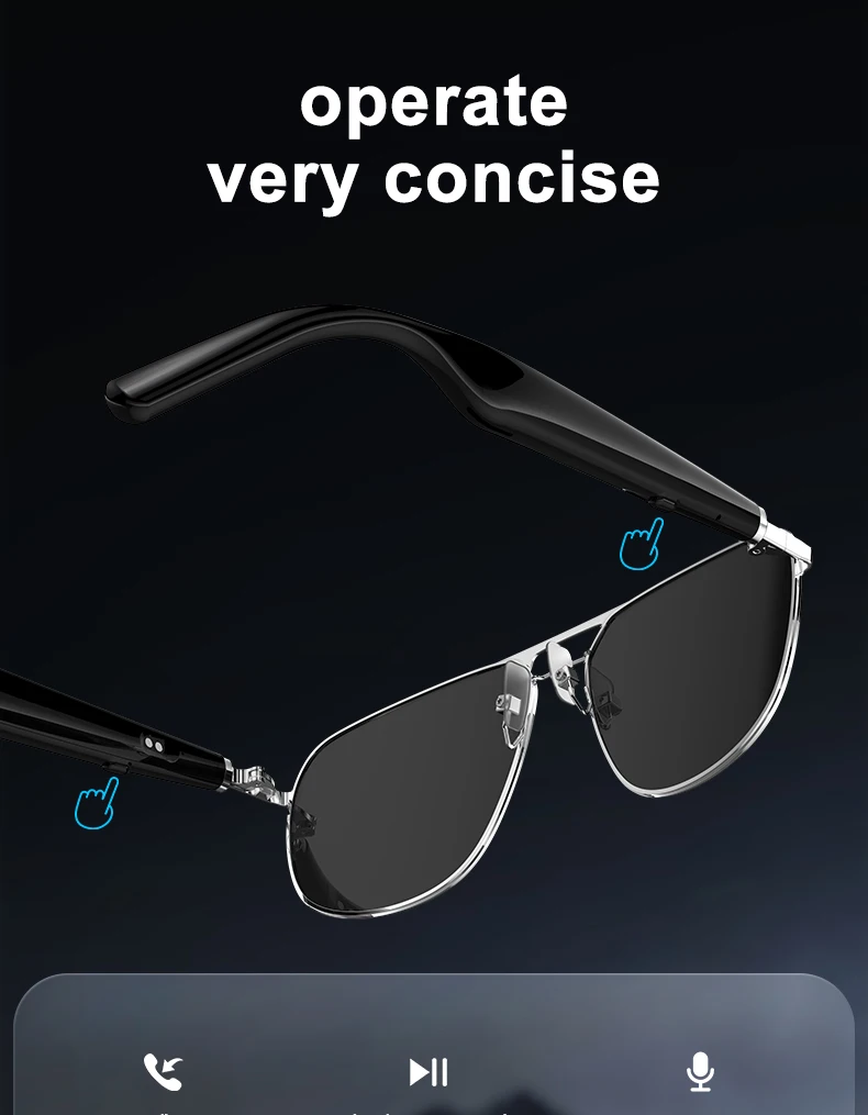 AI Smart Glasses Double Frame Translate Language Receive Call Voice Assistant Listen Music Remote Camera Noise Cancel Sunglasses