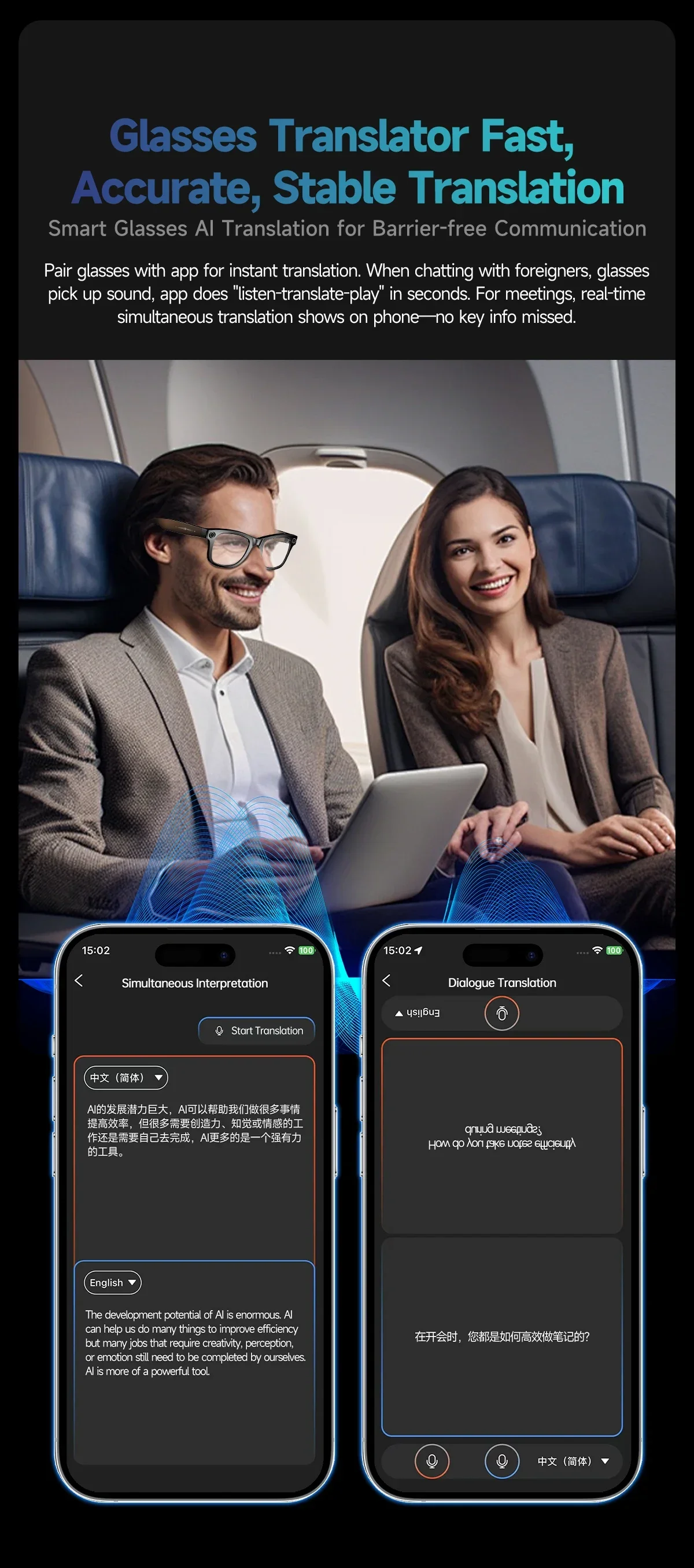 AI Smart Glasses with 8MP Camera Video Recording 100+ Languages Translation Sunglasses Bluetooth Call Music Play Men Women 2025