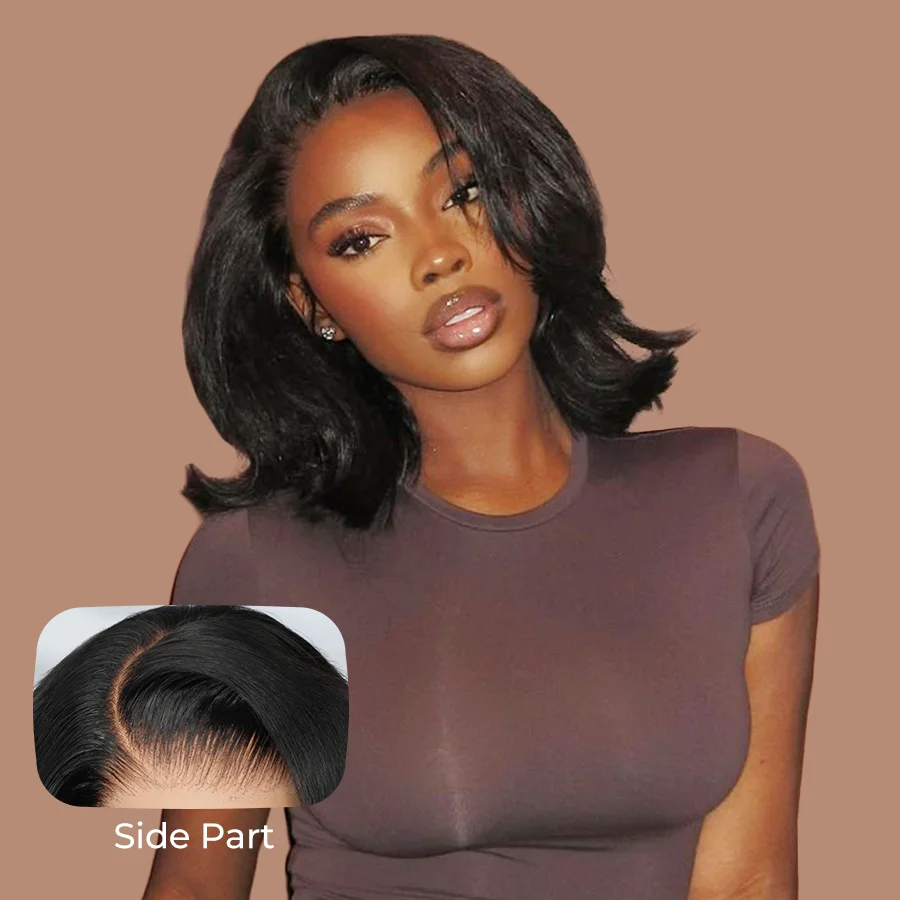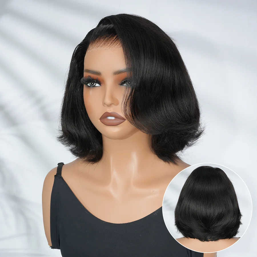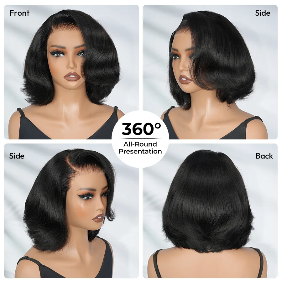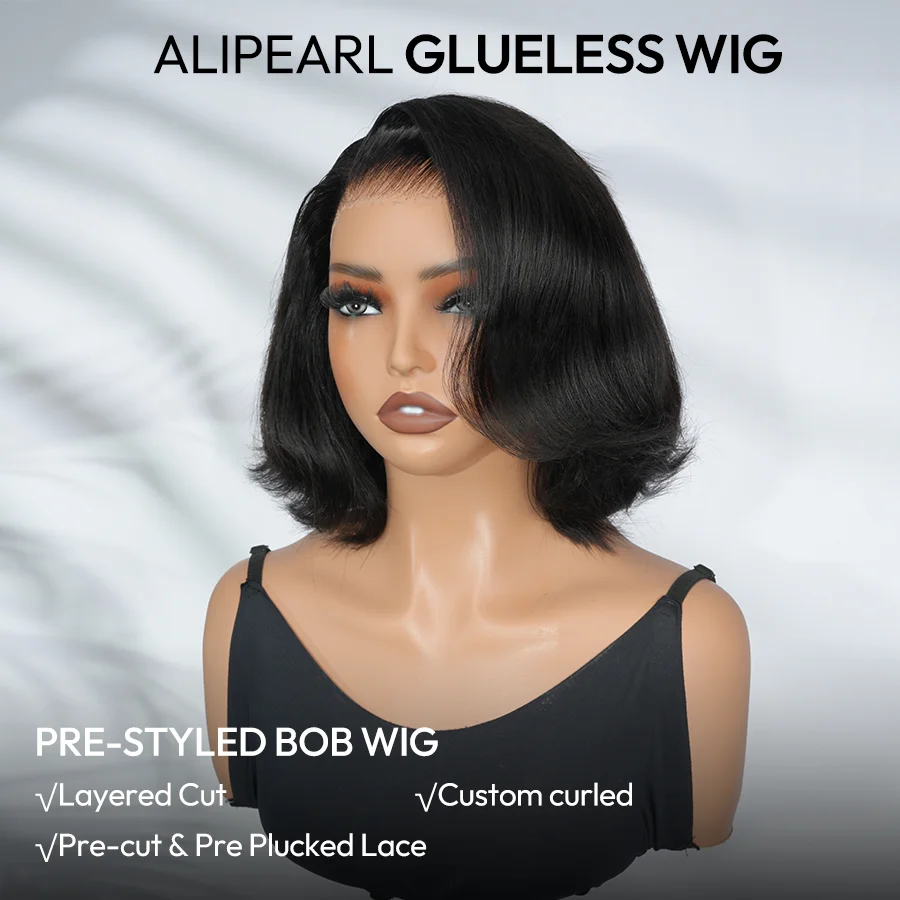 Alipearl Hair Layercut Straight 13x4 Side Part Lace Front Wig Glueless C Part Short Bob Human Hair Ready To Go Wigs 180% Denisty
