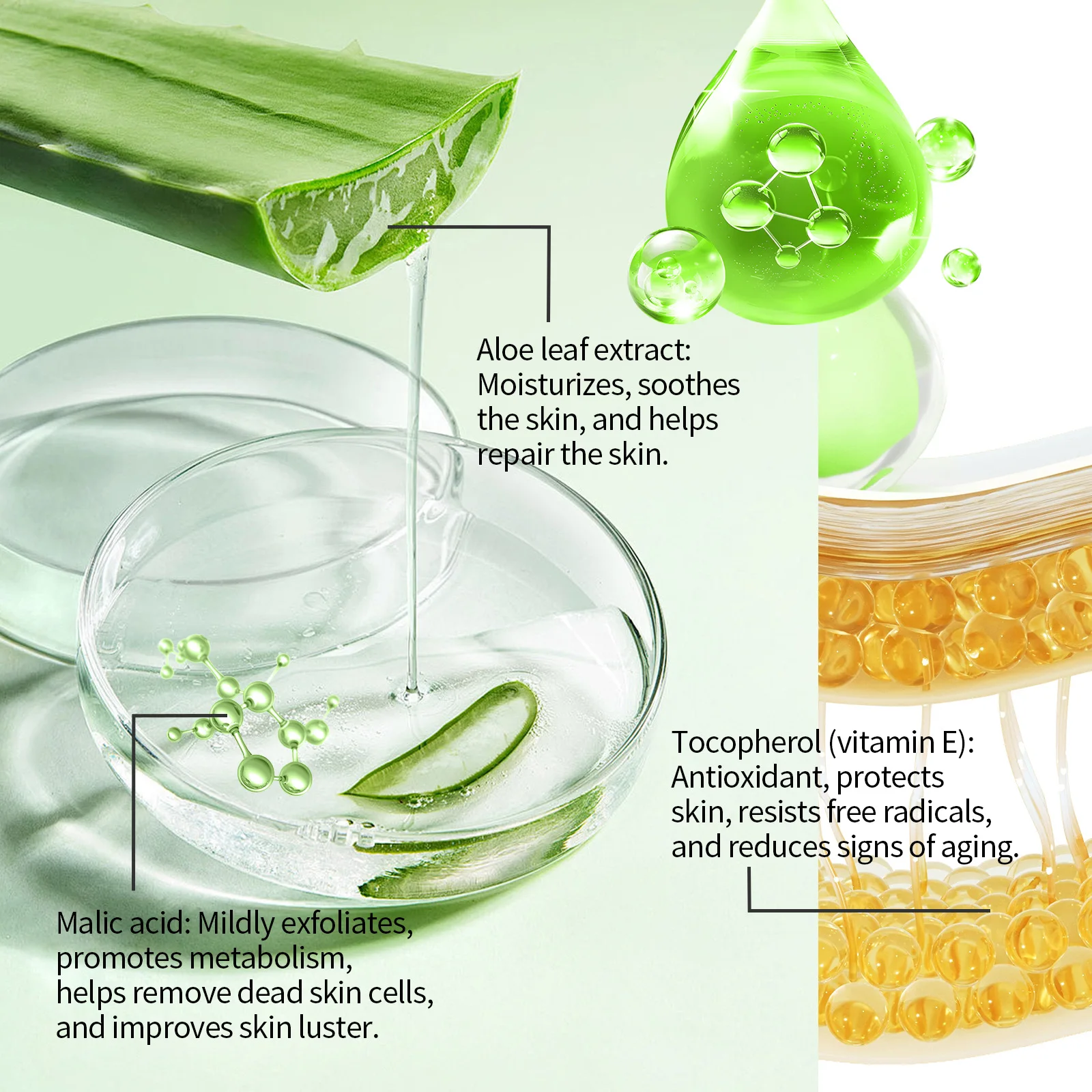 ●Ingredients:Aloe Vera, Hyaluronic Acid, Vitamin E, Centella Asiatica