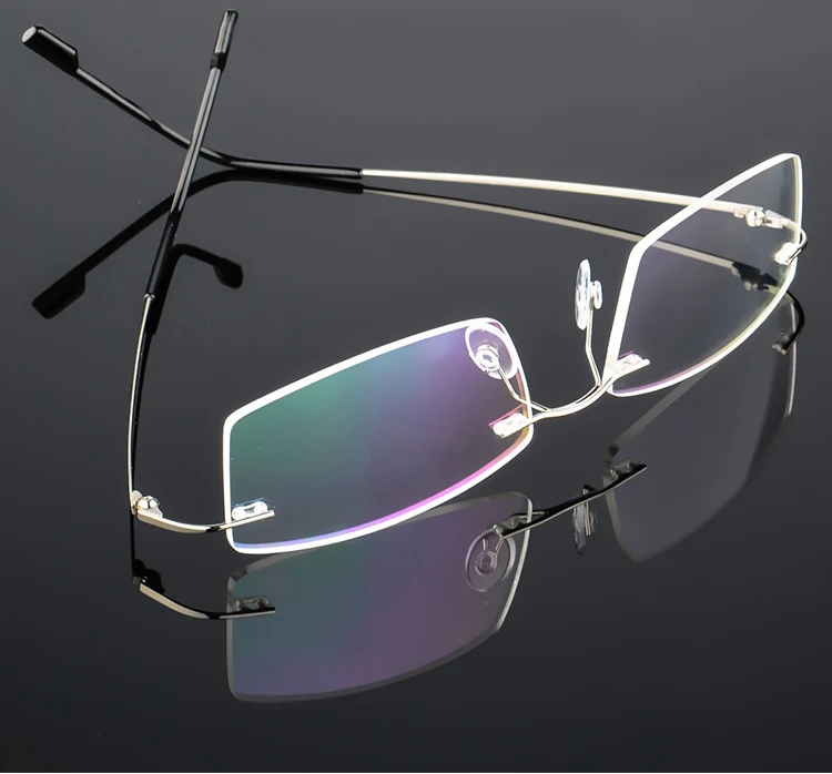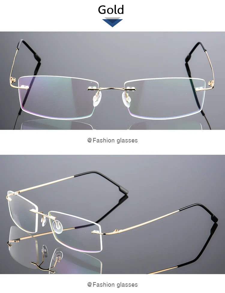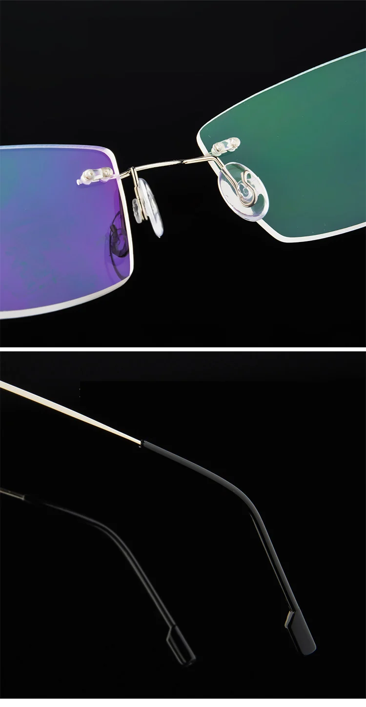 Anti Blue Light Folding Rimless Eyeglasses Optical Glasses Man Square stainless steel Lightweight Memory Titanium Spectacle