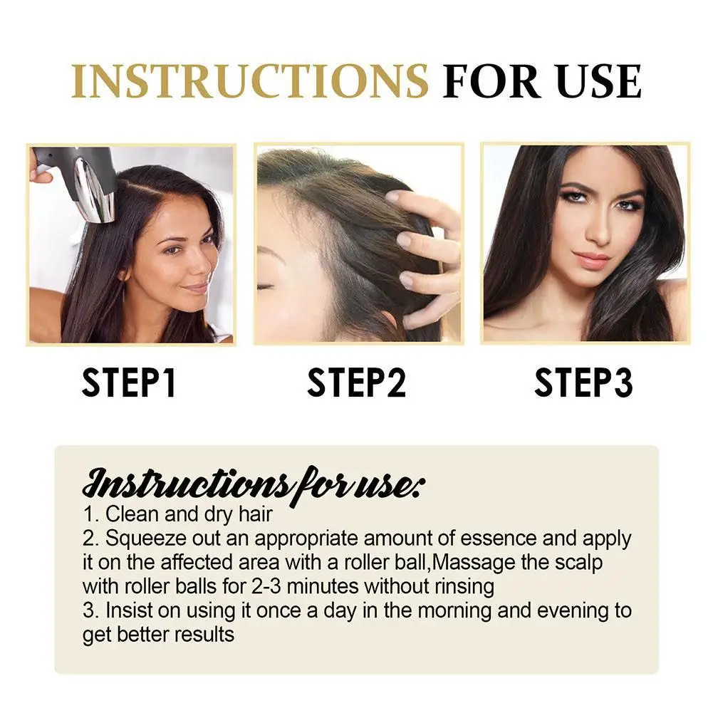 Evenly smear essence on the scalp hair root aft er shampoo, and massage the scalp with beads. Apply it every night before going to bed. It can be use many times.
