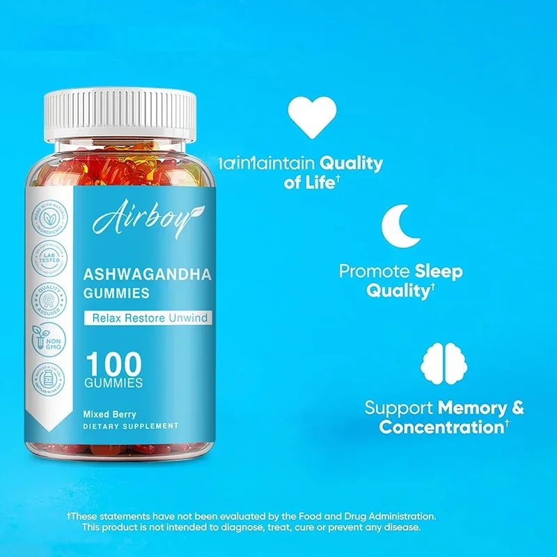 Ashwagandha Gummies - Balance Cortisol Levels, Improve Sleep Quality, Relieve Stress, Relax, Enhance Memory and Concentration