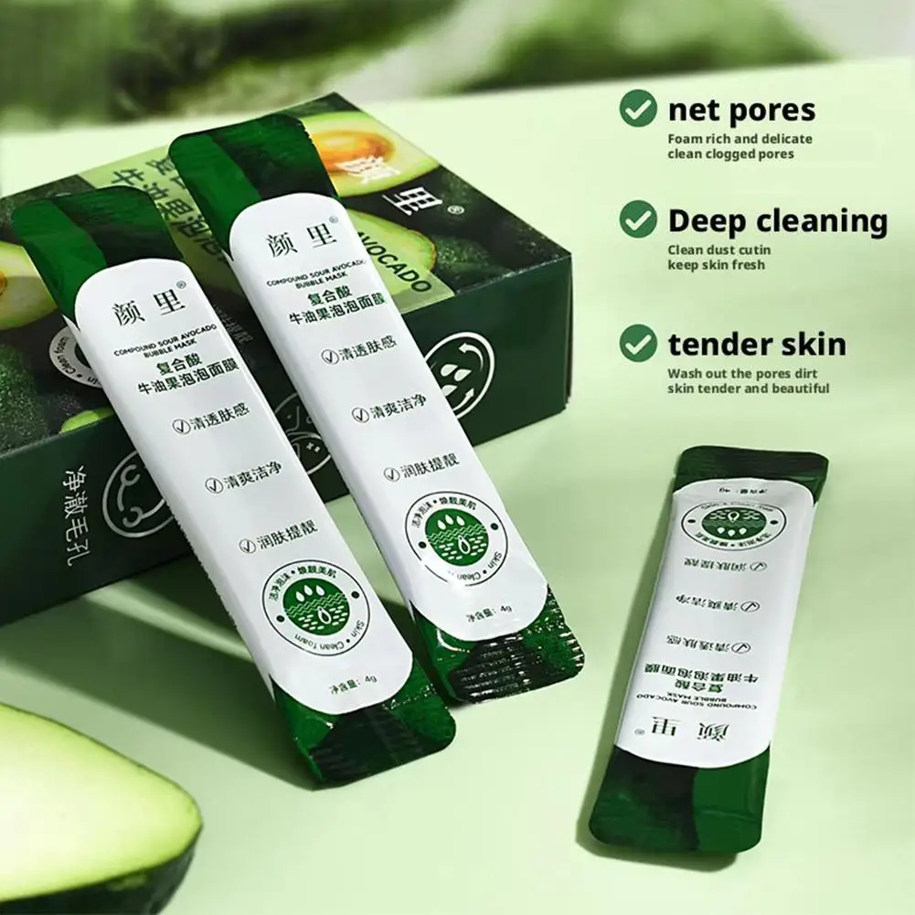 1. Avocado bubble cleaning facial mask has a powerful skin cleaning effect, which can remove blackheads, acne, exfoliate, and improve the coarseness of pores.