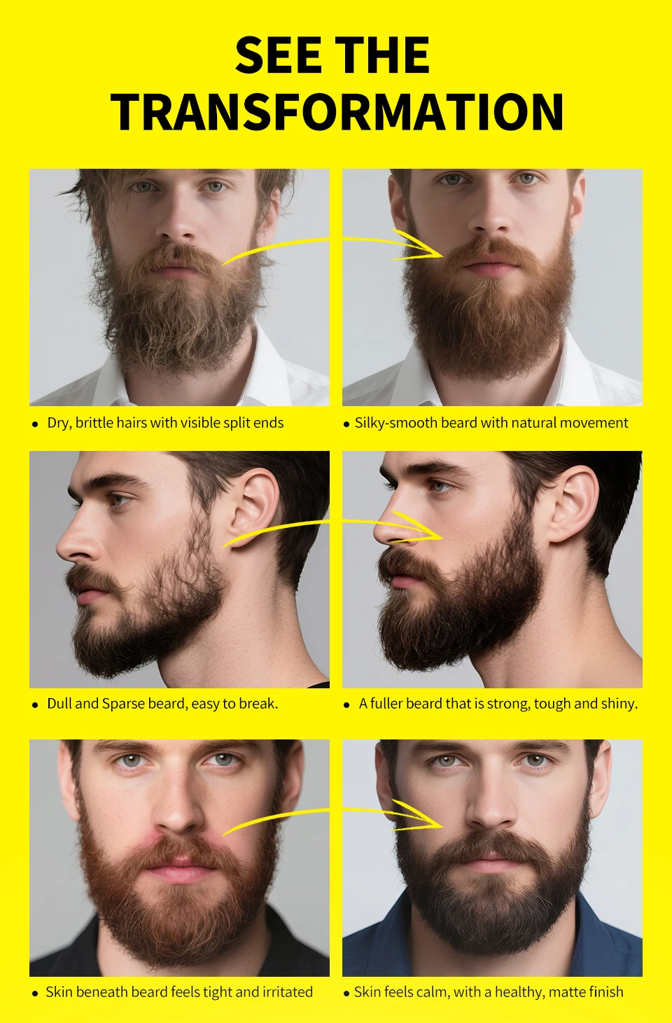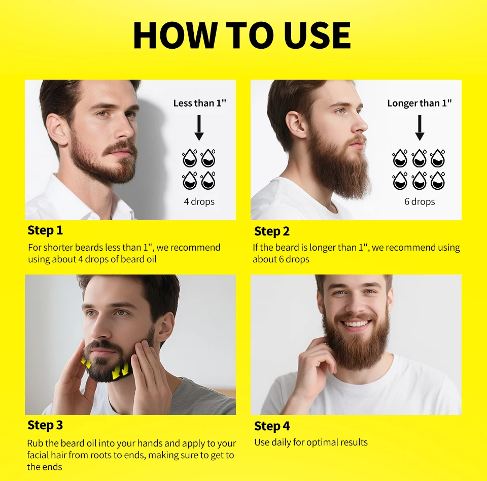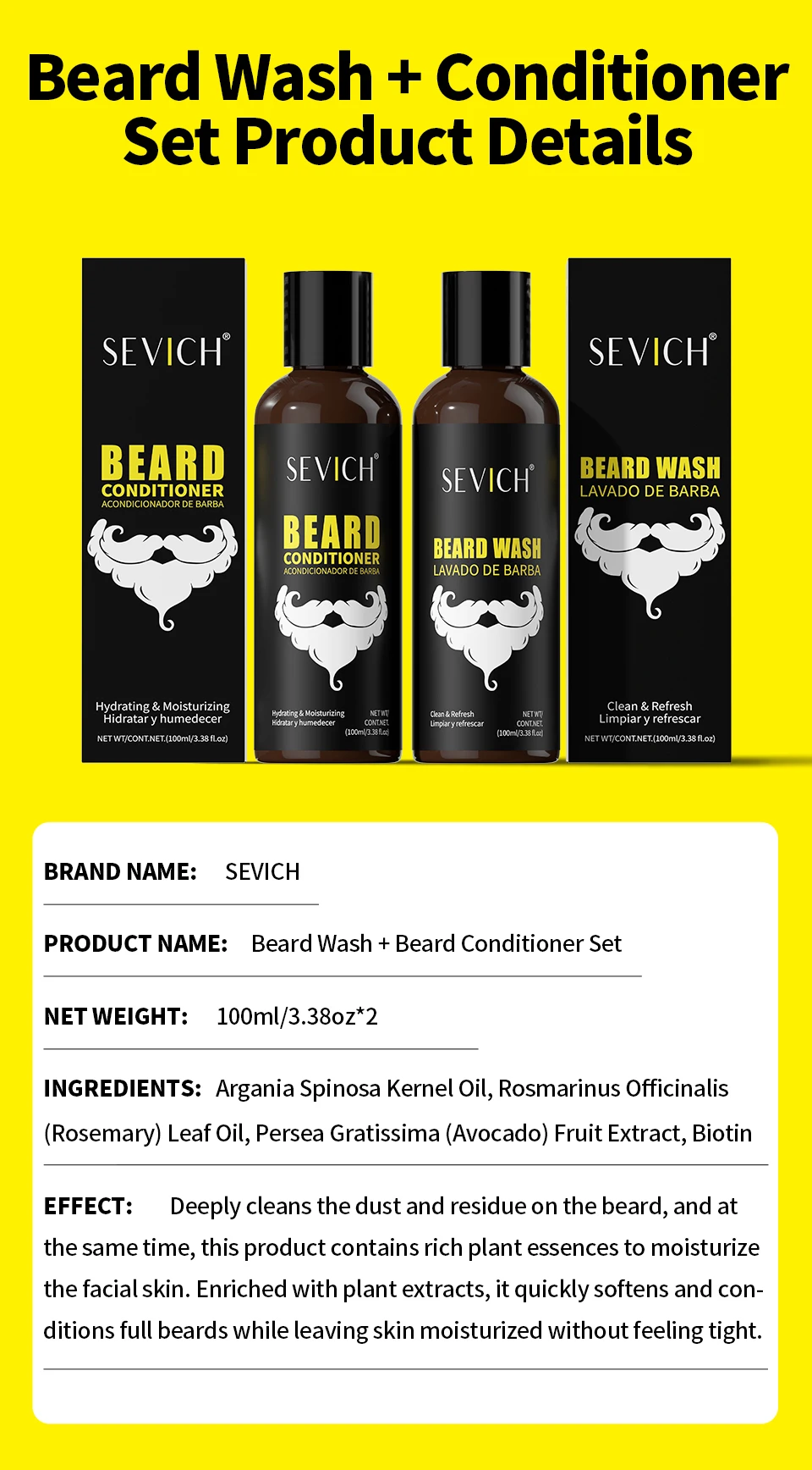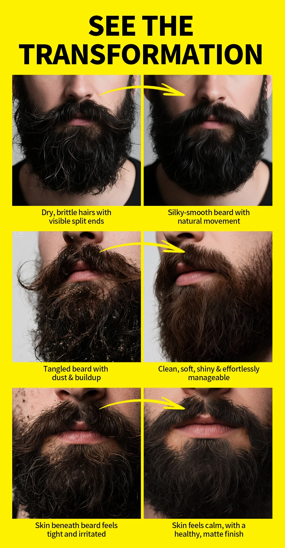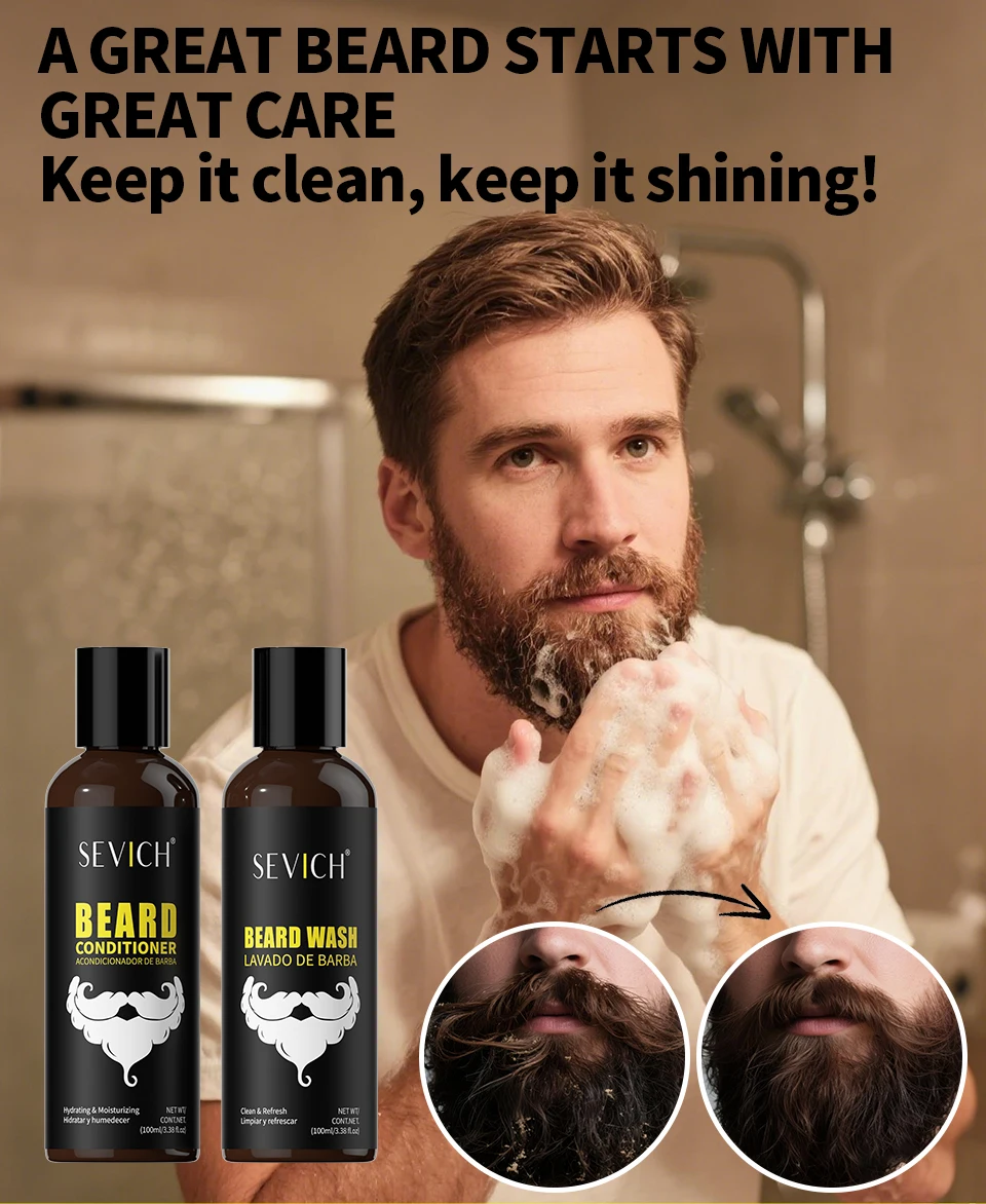 Take an appropriate amount of beard wash and evenly apply it to the beard. Gently massage in circles to create rich bubbles for better cleaning effect. After rinsing, take an appropriate amount of beard protection and apply it to the beard. Gently massage for about 5 minutes to rinse off