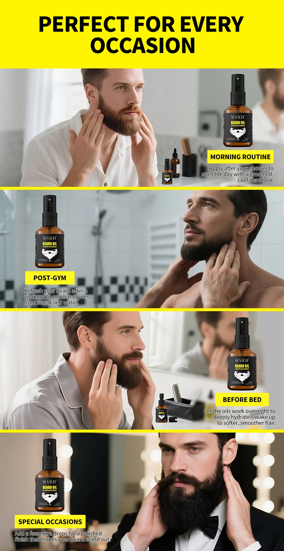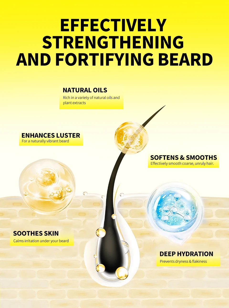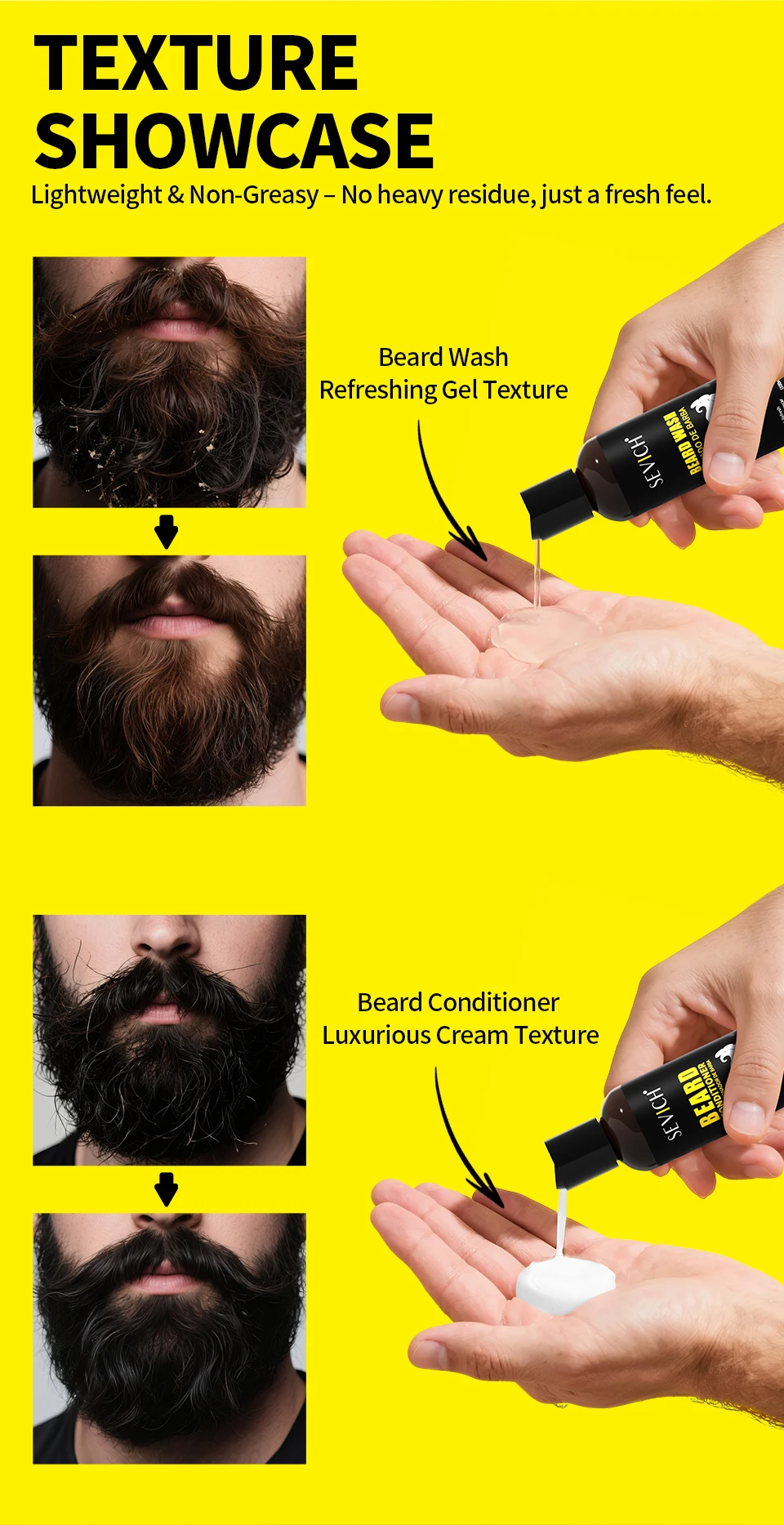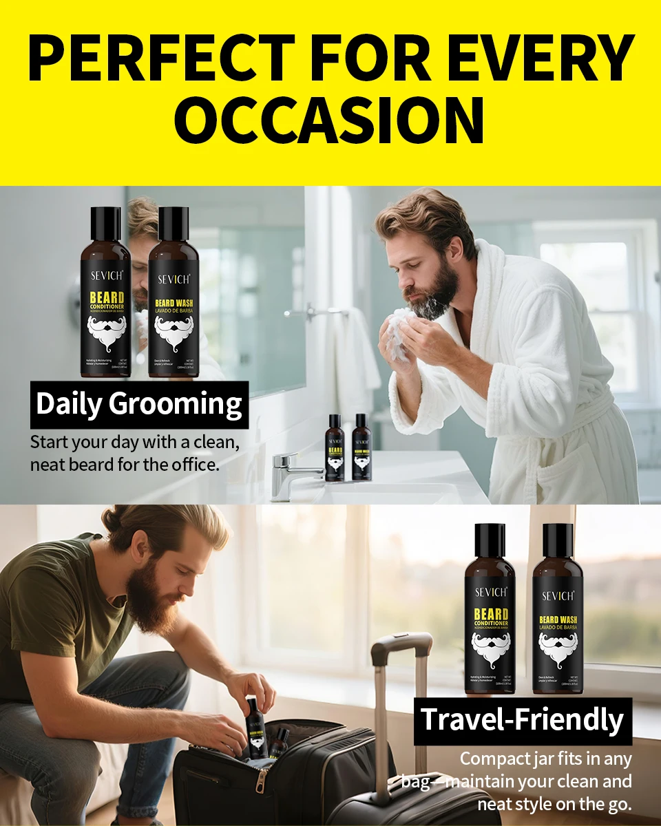 Take an appropriate amount of beard wash and evenly apply it to the beard. Gently massage in circles to create rich bubbles for better cleaning effect. After rinsing, take an appropriate amount of beard protection and apply it to the beard. Gently massage for about 5 minutes to rinse off