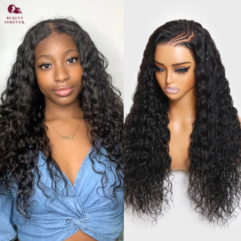 Beautyforever Water Wave Glueless Human Hair Wig Bye Bye Knots 7x5 13x4 Drawstring Lace Front Human Hair Wig Pre Cut Lace 180%