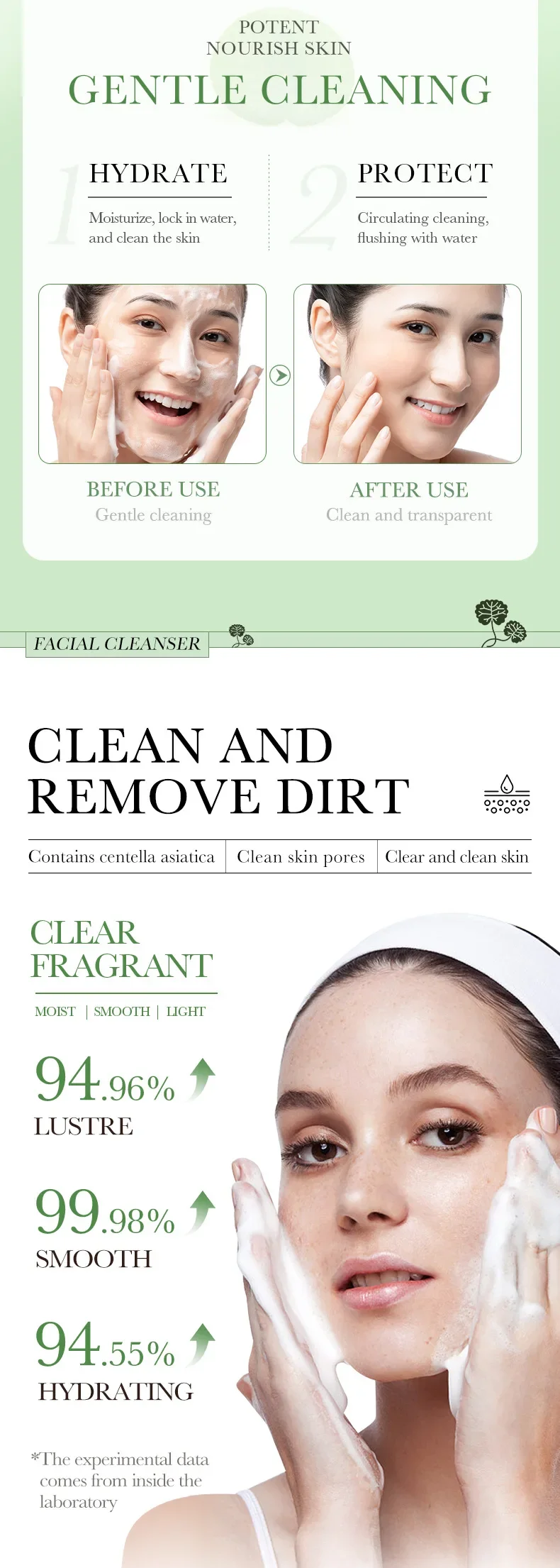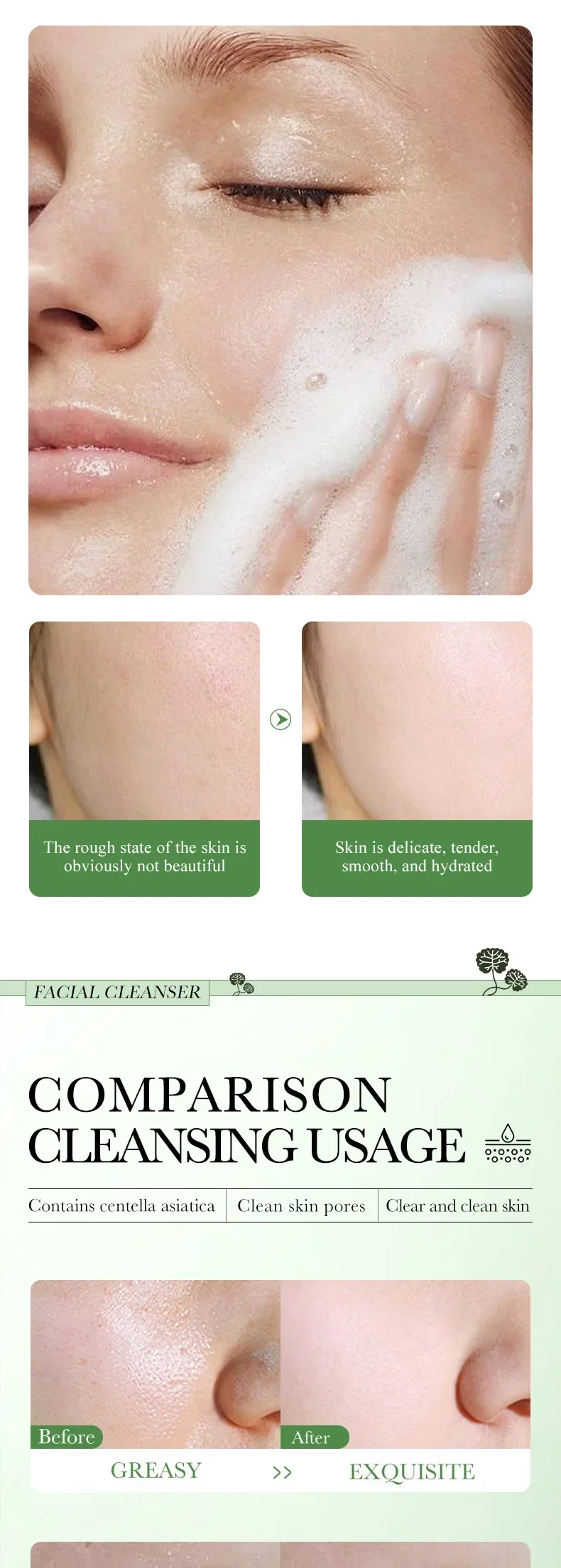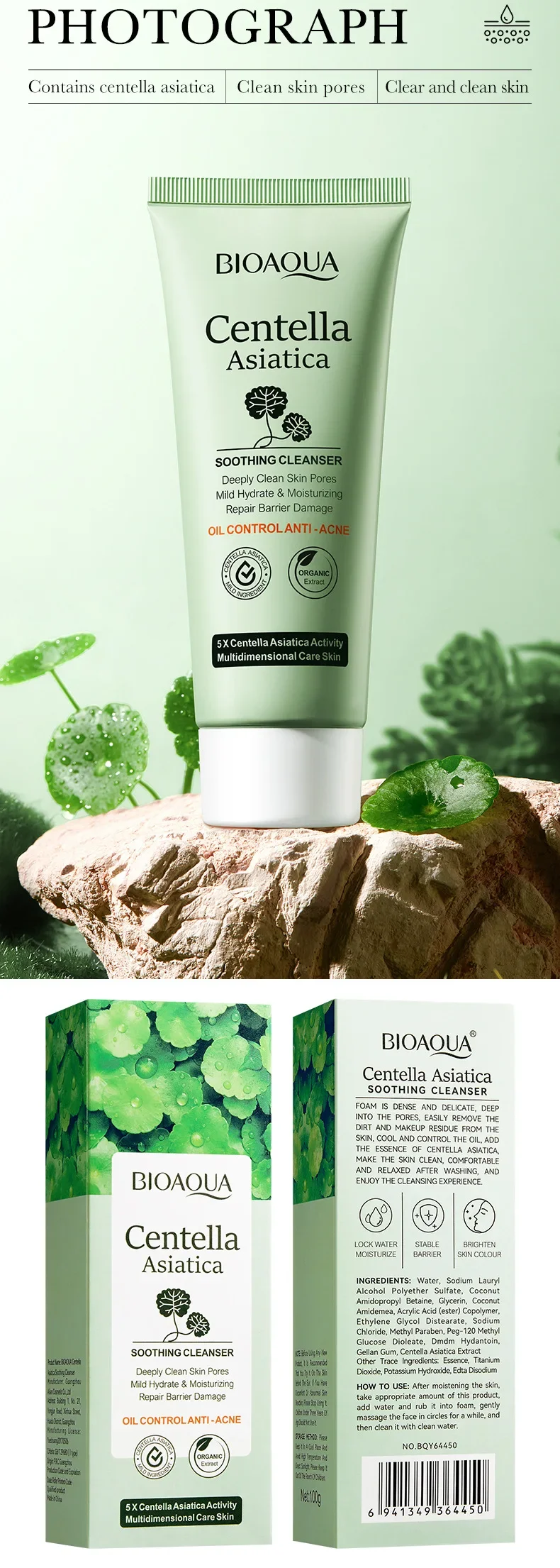BIOAQUA Centella Asiatica Facial Cleanser Moisturizing Oil Control Face Cleansing Face Wash Foam Facial Cleanser Skin Care