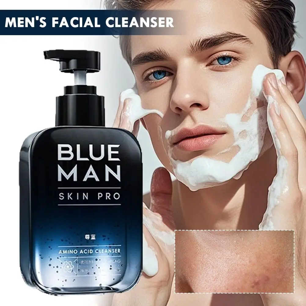 Blue Man Skin Pro Amino Acid Facial Cleanser Oil Control Blackhead Removal Pores Shrink Deep Cleansing Skin Care Men's Cleanser