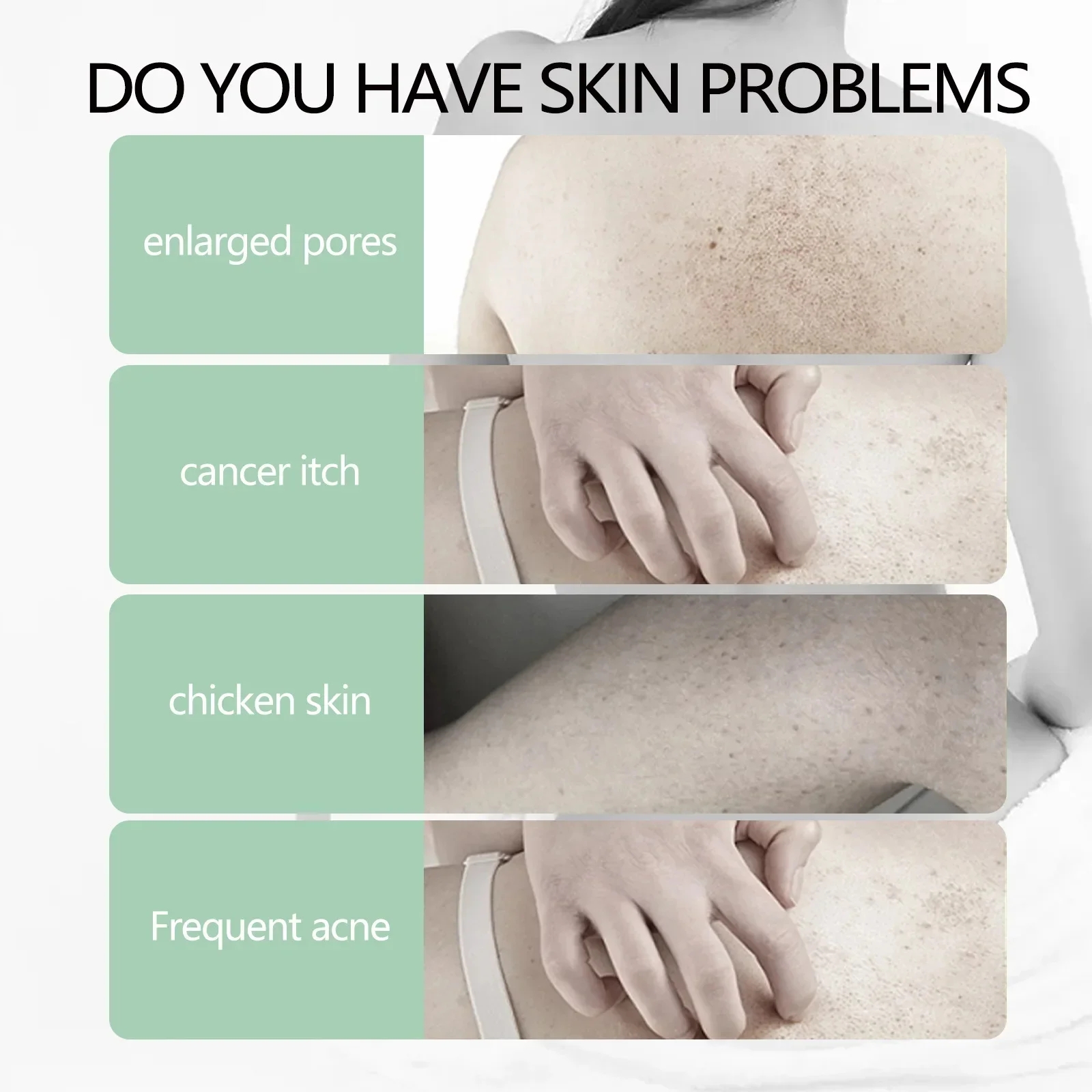 ●3.Suitable for eliminating acne on the back, chest, shoulders, buttocks, and thighs, reducing pore size, soothing acne, pimples, and uneven skin without excessive dryness.