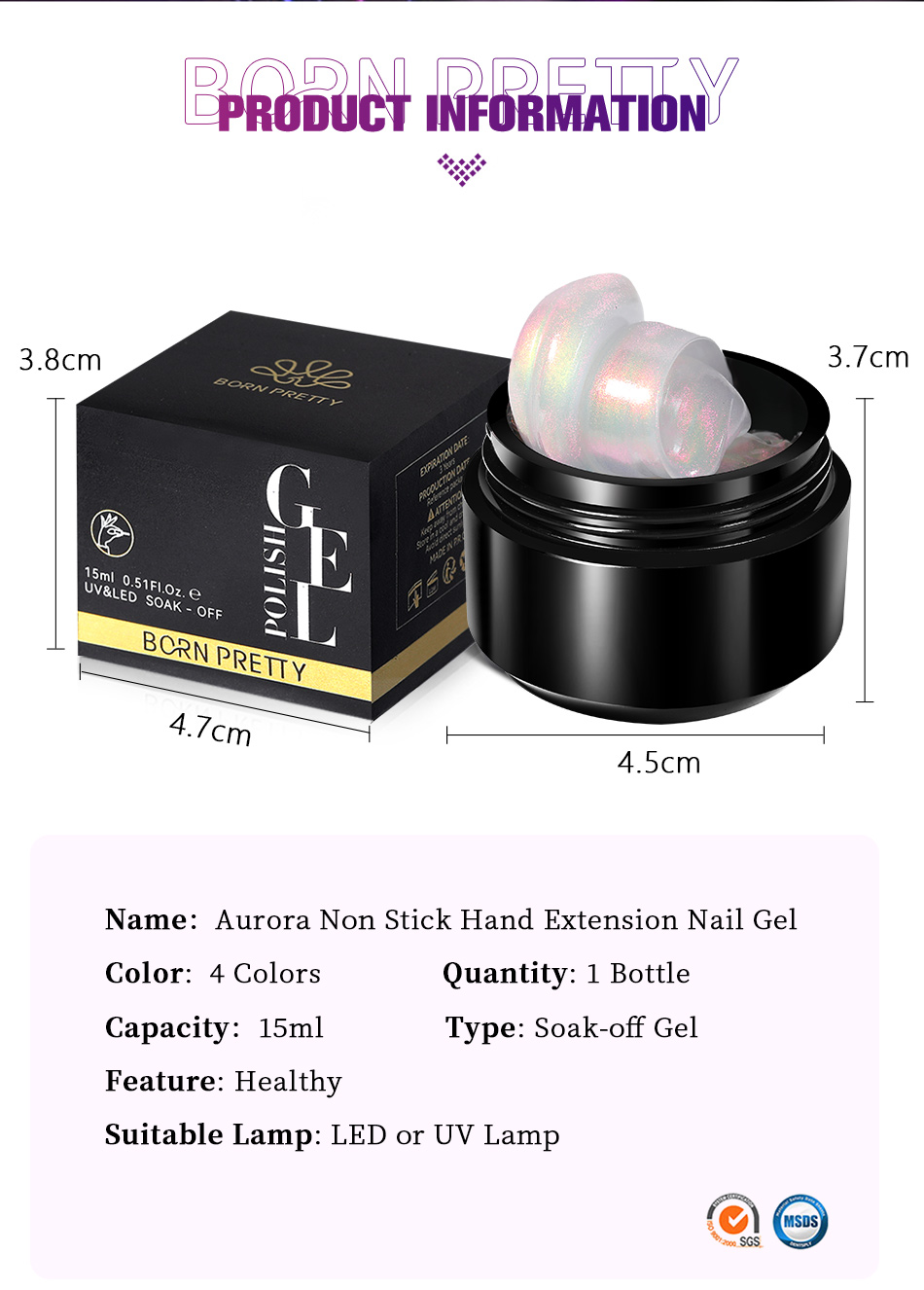Born Pretty 15ml Aurora 3D Shaping Non Stick Hand Nail Extension Gel Soak Off UV LED For Nail Building Manicure Construction Gel