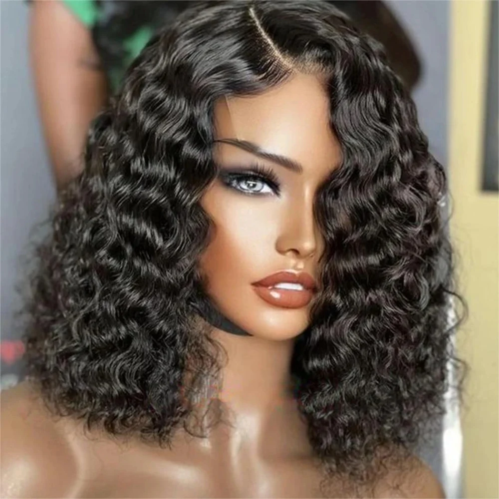 Brazilian Curly Short Bob 13x4 HD Lace Frontal Human Hair Deep Wave 4x4 Transparent Lace Front Wigs 200% Closure Wig For Women