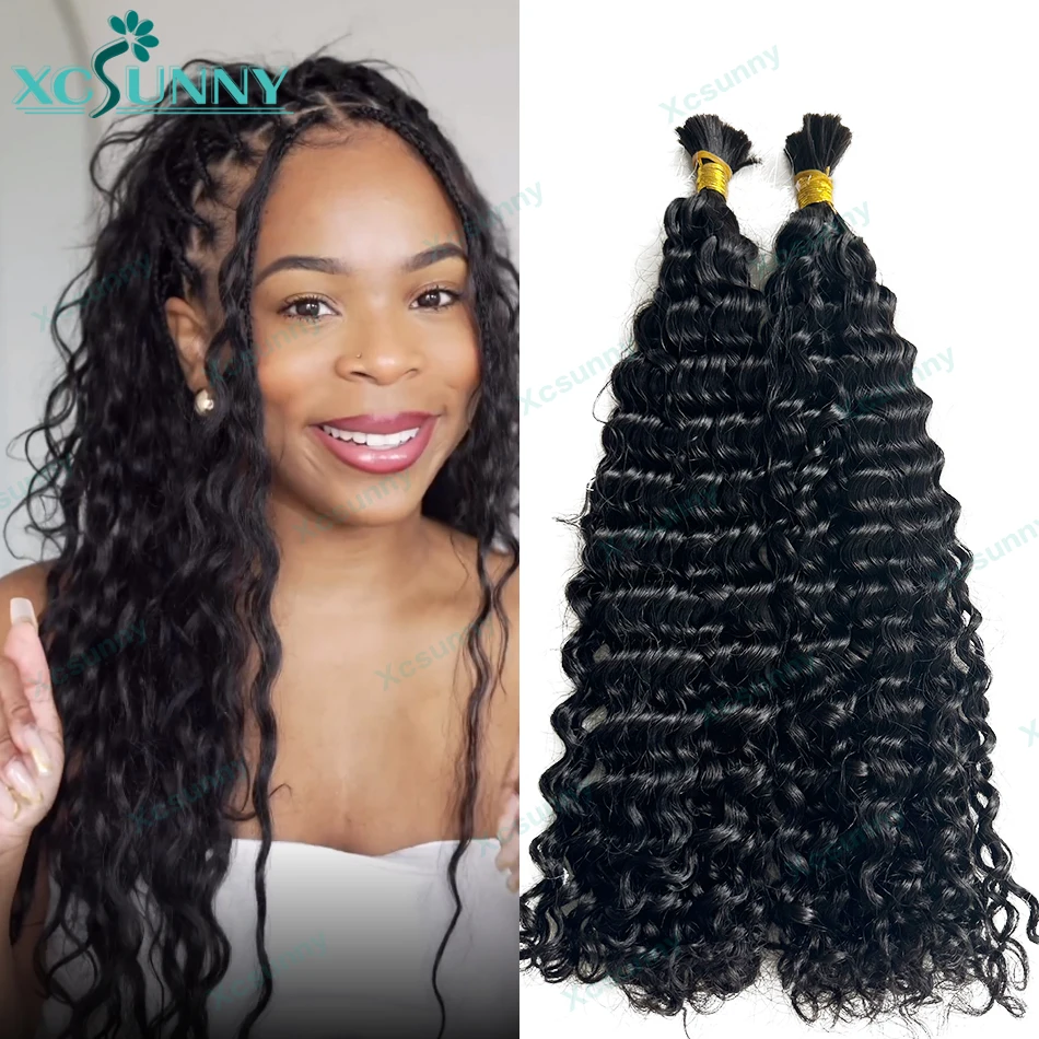 Bulk Human Hair No Weft For Braiding Curly Deep Wave Full Ends Extensions 3pcs/5pcs Bulk Hair Bundles Wholesale For Boho Braids
