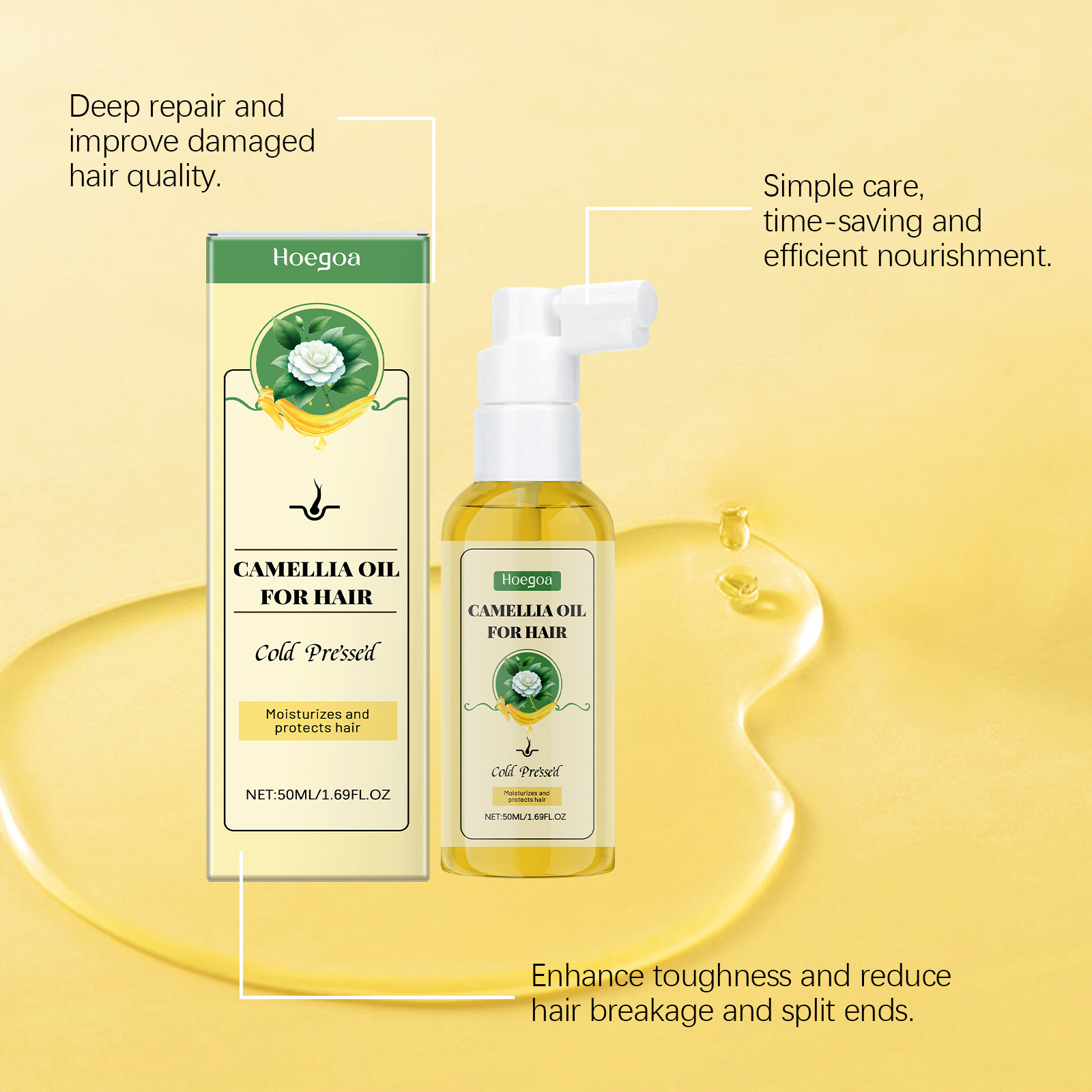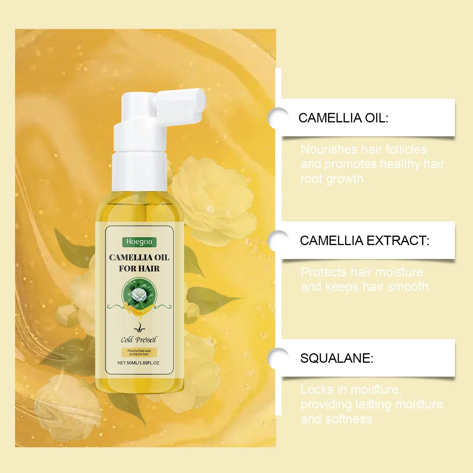 Hoegoa Camellia Hair Oil Restore Hair Shine Softness Smooth Deep Moisturizer Repair Keratine Damaged Frizz Dry Scalp Hair Care Products 50ml / 100ml