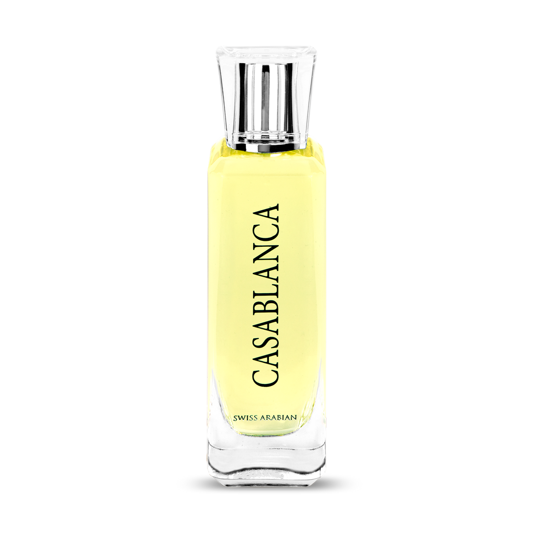 CASABLANCA: YOUR NEW SIGNATURE SCENT. Opens with the finest notes of Grapes and uplifting Apples. The beating heart of the fragrance brings out the deep resonance of Patchouli and Orris. Amber and Musk add depth to the aroma and inspire attention.