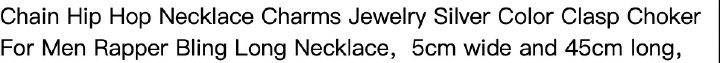 Chain Hip Hop Necklace Charms Jewelry Silver Color Clasp Choker For Men Rapper Bling Long Necklace,5cm wide and 50cm longs