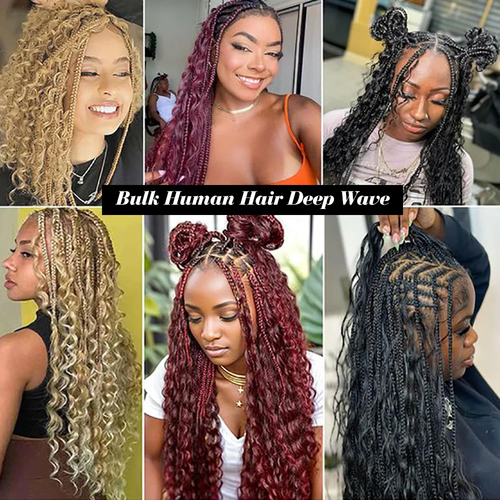 Chocolate Brown Braiding Hair for Boho Braids Human Hair Braiding Hair 2 Bundles/Pack 100g 18 Inch Deep Wave Boho Hair Braiding