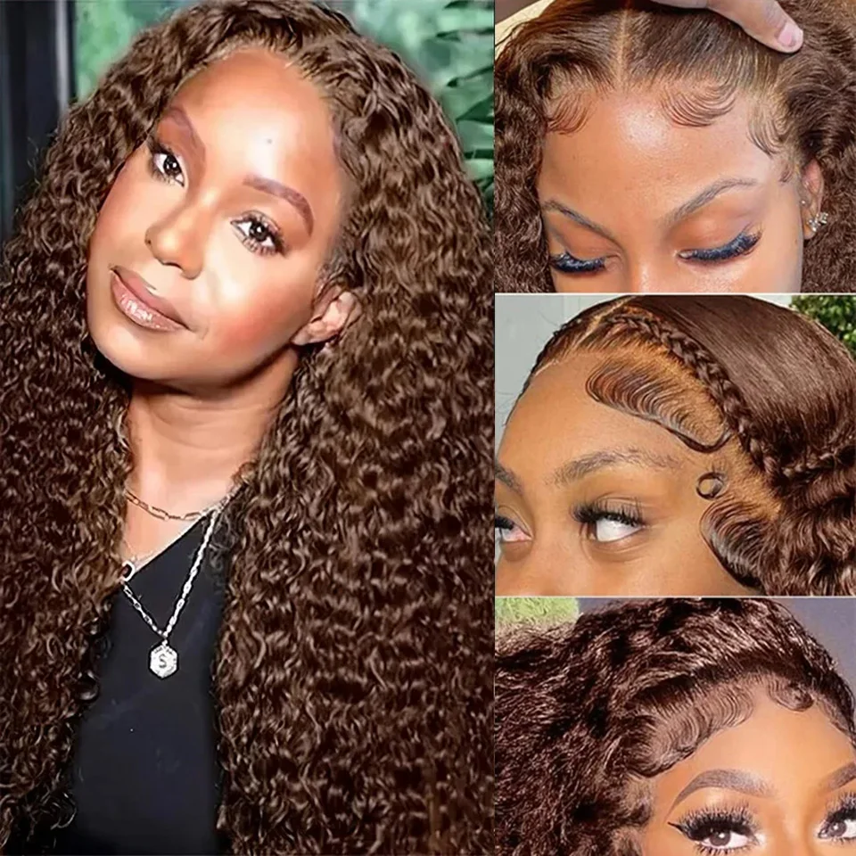 Chocolate Brown Deep Wave Human Hair Wig 30 Inch Transparent Lace Frontal Wigs For Women 13x6 Lace Front Water Curly Wave Wig