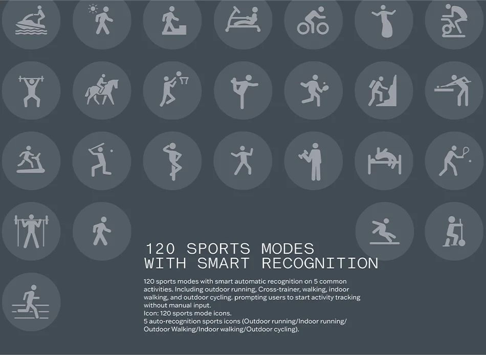 Support Sport Modes----120 Sport Modes with 5 Smart Recogntion