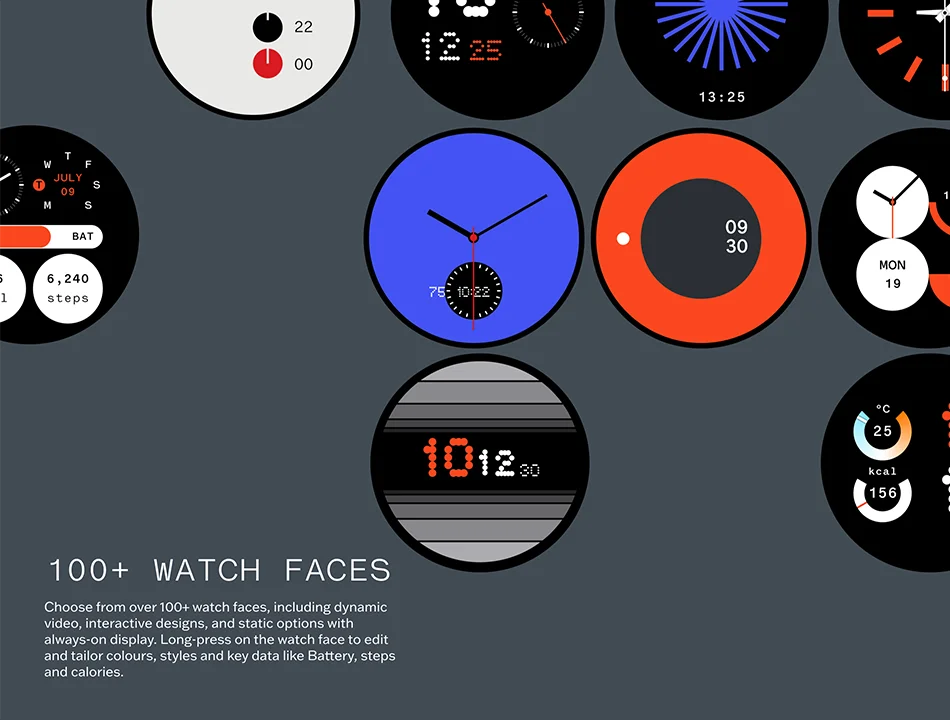 Watch faces----100+ signature watch faces with customisable options