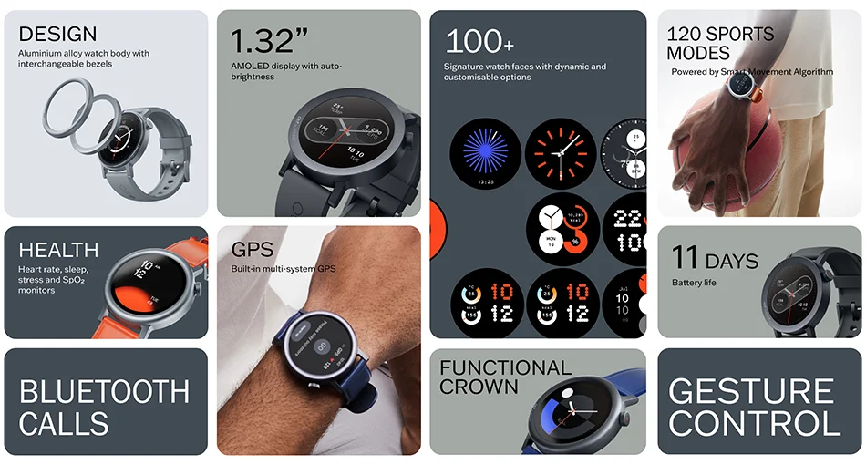 1.32’’ AMOLED Display, 100+ WATCH FACE, 120 SPORTS MODES