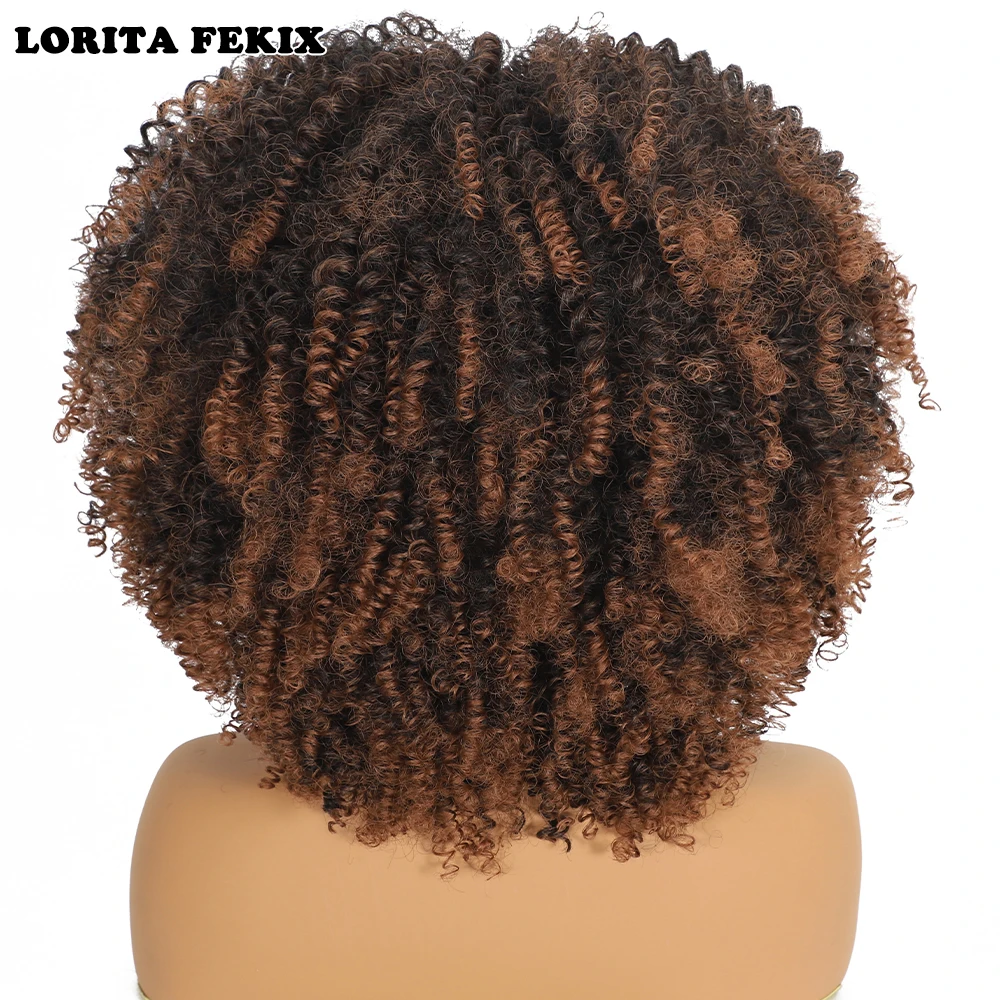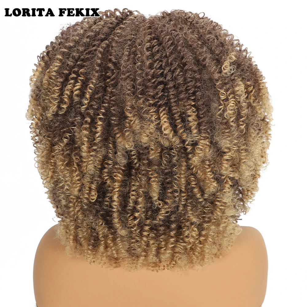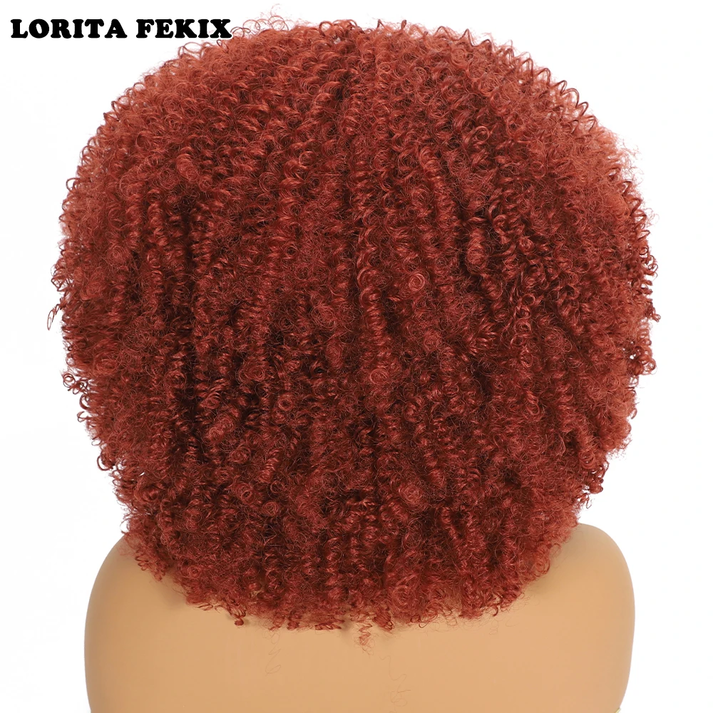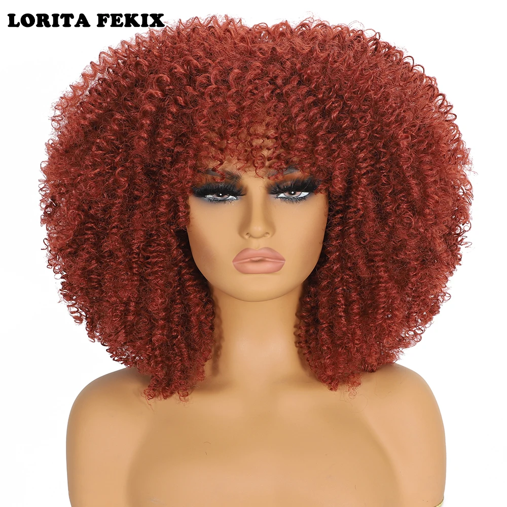 Curly Afro Wigs for Black Women Synthetic Afro Kinky Curly Wig with Bangs Heat Resistan Short Kinky Curly Wigs for Daily Party