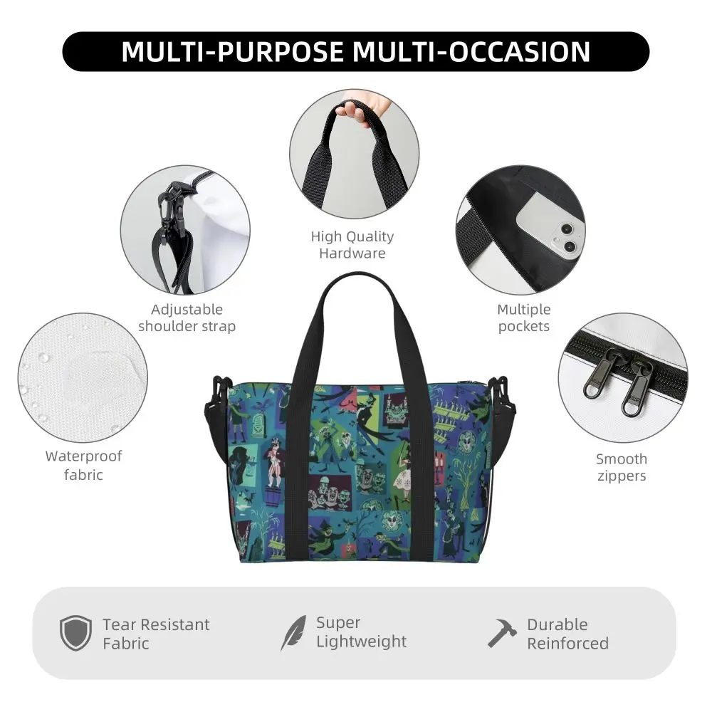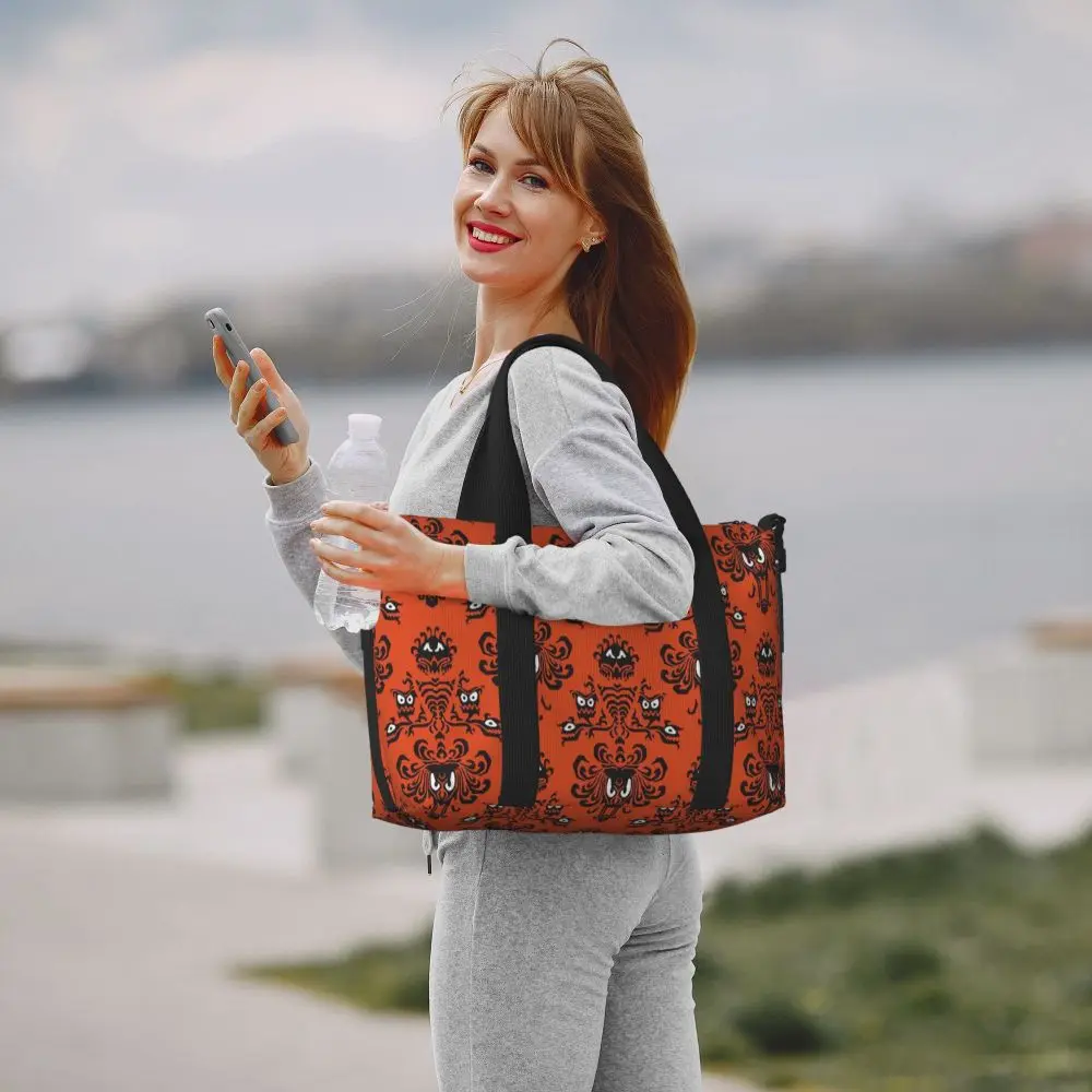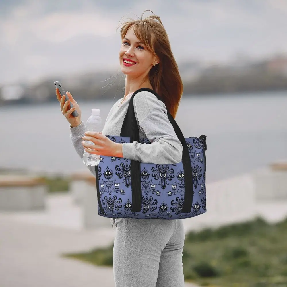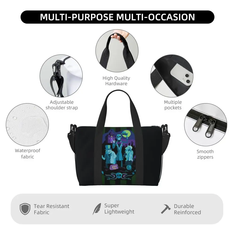 Custom Haunted Mansion Logo Groceries Shopping Tote Bags Women Large Capacity Halloween Grimace Ghosts Gym Beach Travel Bags
