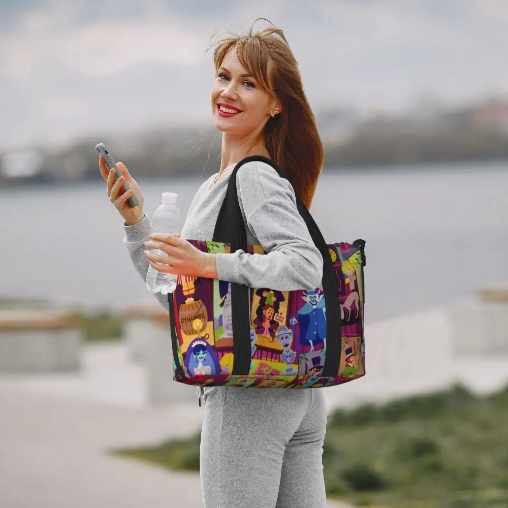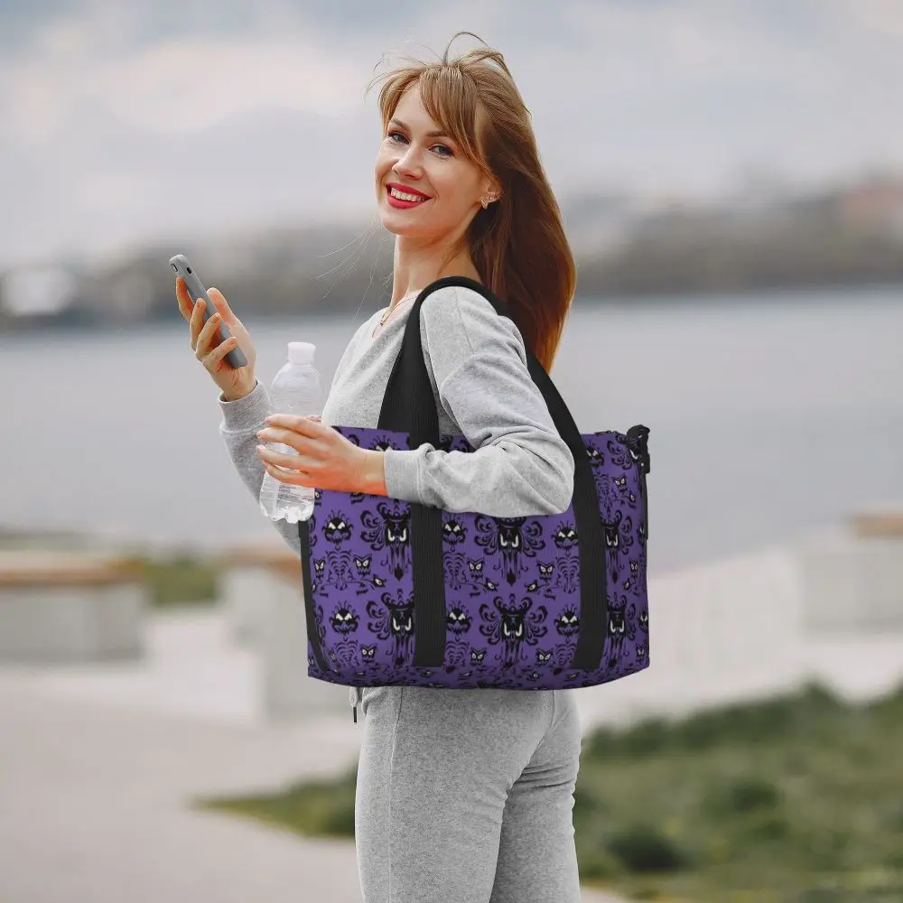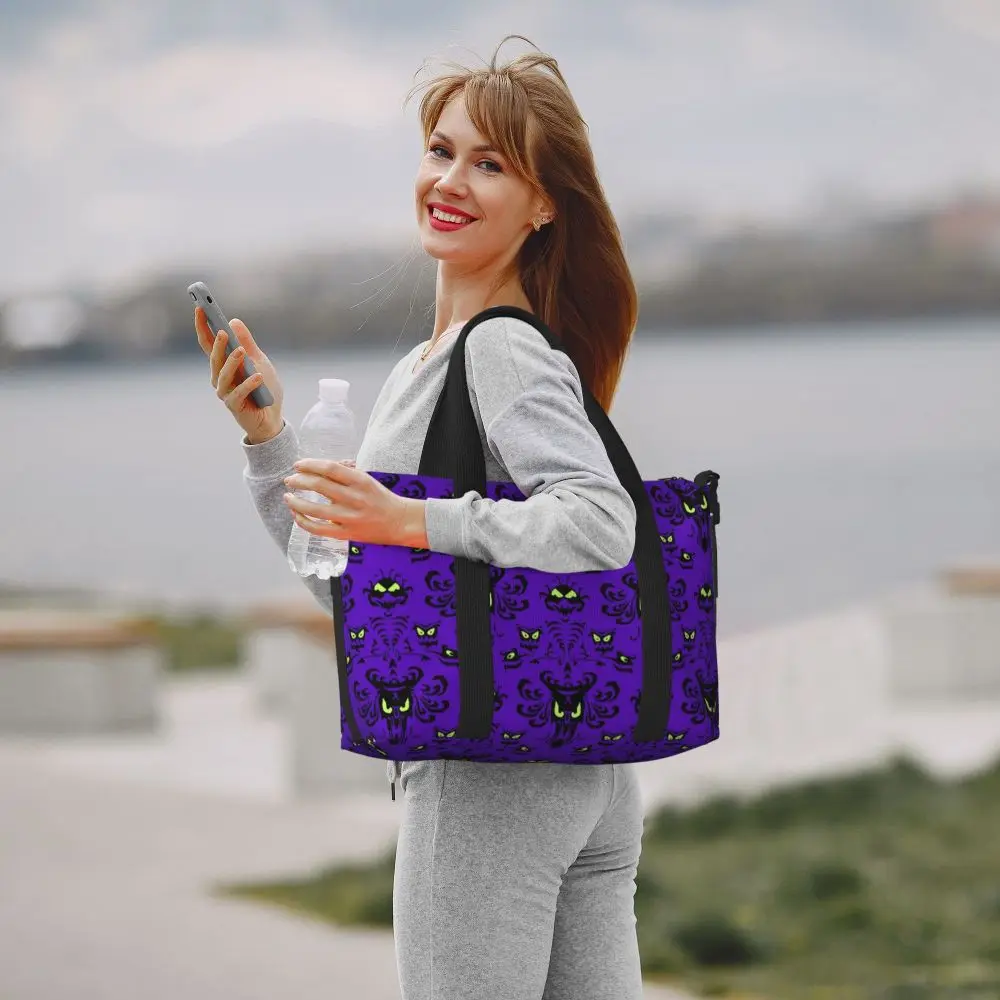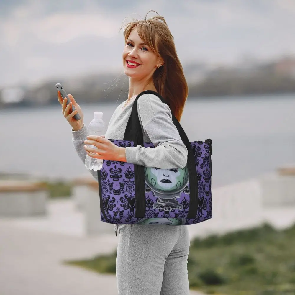 Custom Haunted Mansion Logo Groceries Shopping Tote Bags Women Large Capacity Halloween Grimace Ghosts Gym Beach Travel Bags