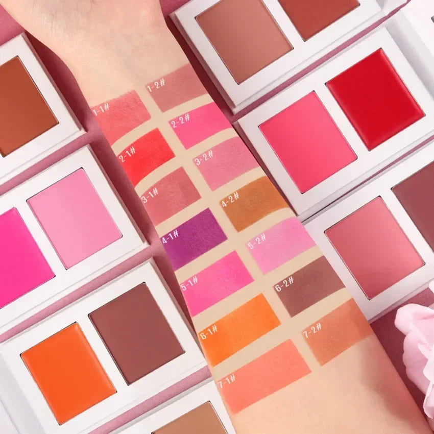 Custom Logo 7-Color Blusher Private Label Pigment Long-lastiing Two Color Cream Pressed Powder Makeup Wholesale White Packaging
