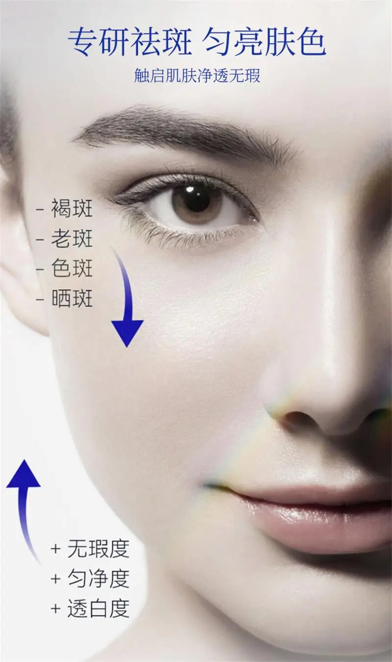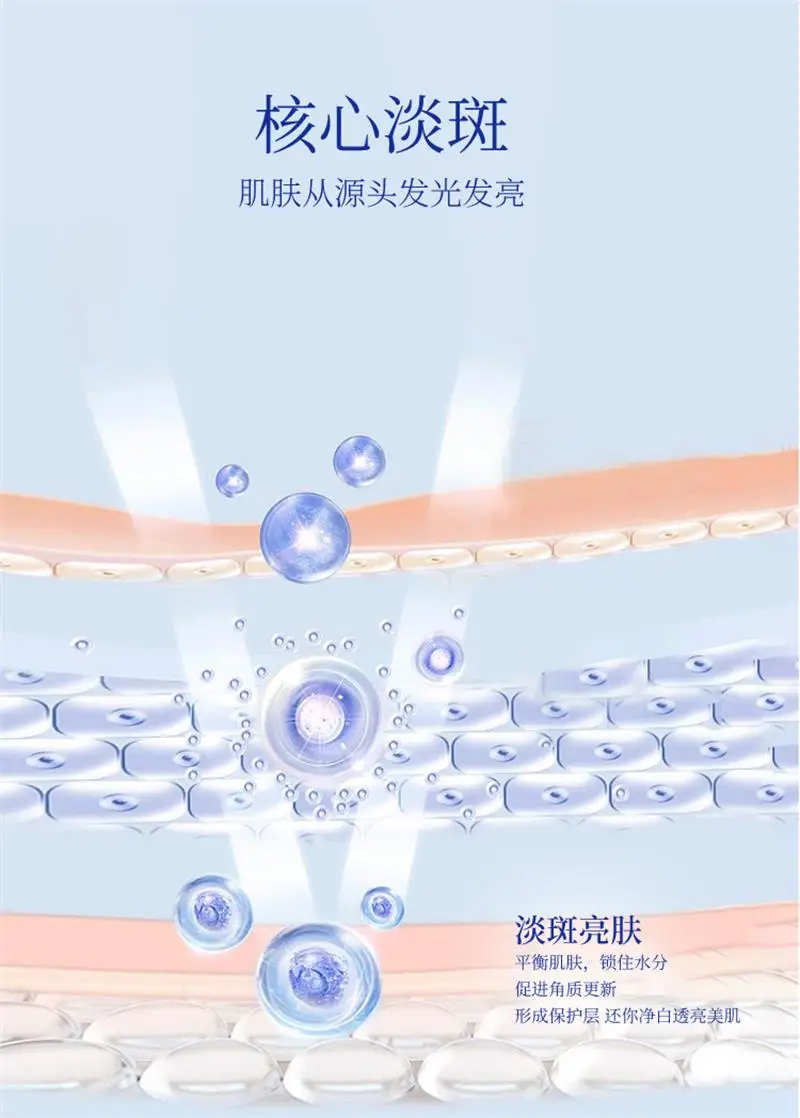 ▶This product is made from natural biological essence extracted from the high-tech.Rich in niacinamide whitening and anti-freckle ingredients,with freckle whitening, remove acne, effect long-term use can regulate skin cell regeneration and repair capability , eliminating the incentive to produce melanin , the effective prevention of various types of stains regeneration , reaching the skin smooth and delicate, soft whitening efficacy.