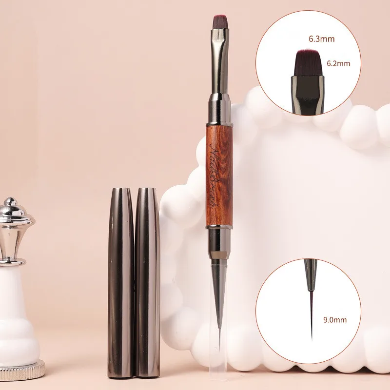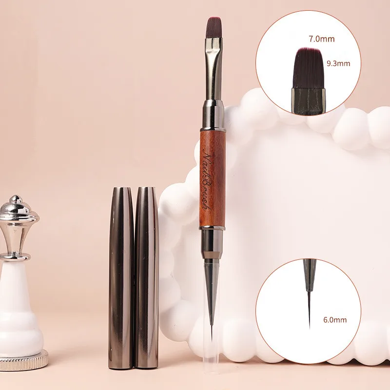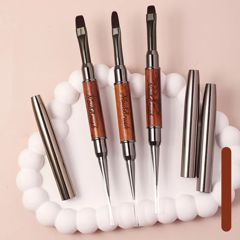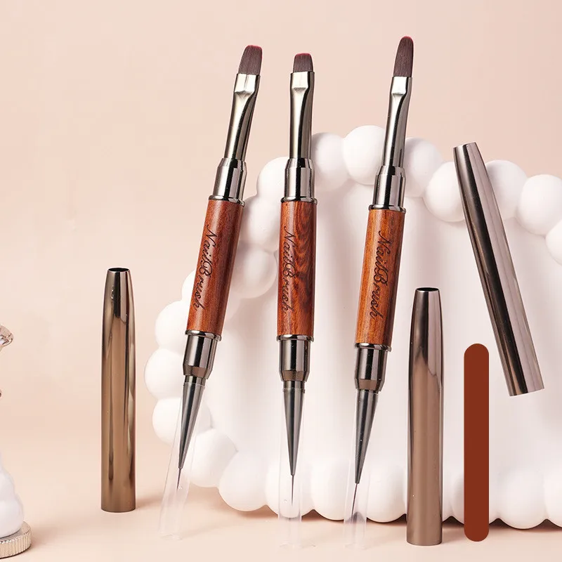 Double-end Sandalwood Nail Pen Brush Glue Phototherapy Pen Liner Brush Dual End Nail Art Painting Manicure Brushes Tool