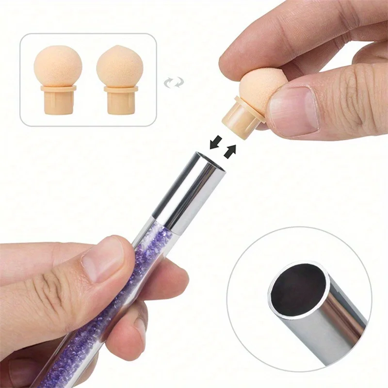 Double-ended Gradient Shading Pen Dotting Brush Sponge Head Rhinestone Handle Nail Art Brush Nail Art Painting Manicure Tools