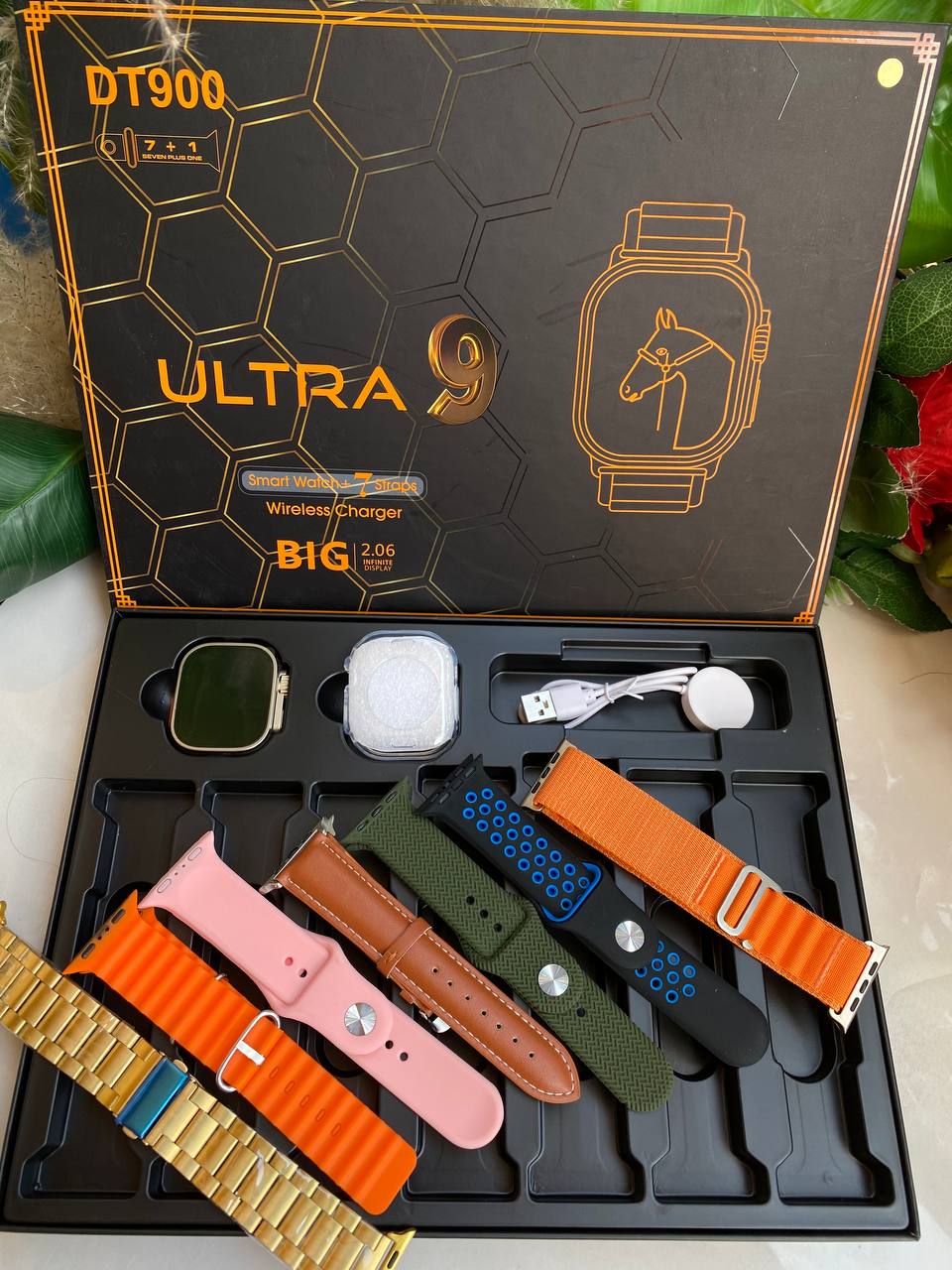 The DT900 ULTRA 9 Smart Watch combines advanced functionality with versatile style, featuring 7 interchangeable straps and a protective cover. It supports Bluetooth calls and call recording for seamless communication on the go. Track your fitness with multiple sports modes including running, mountaineering, jogging, walking, rope skipping, calorie, and step counting. Stay connected with message and app notifications, while monitoring your heart rate and sleep quality. Additional features like alarm, stopwatch, and find phone enhance daily convenience. Compatible with both Android and iOS via the Doufit Wear app for easy setup and management.