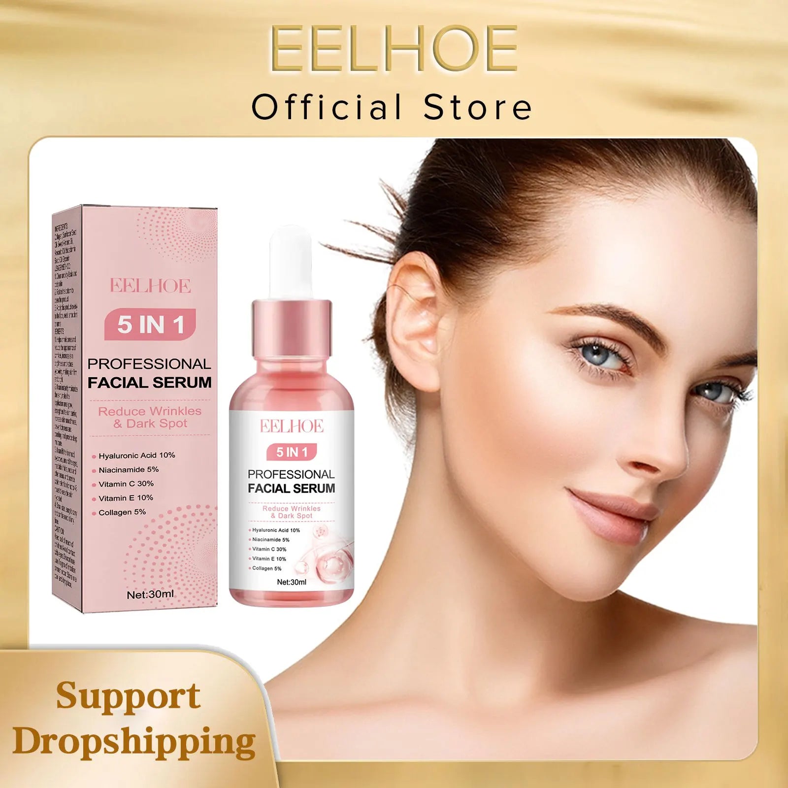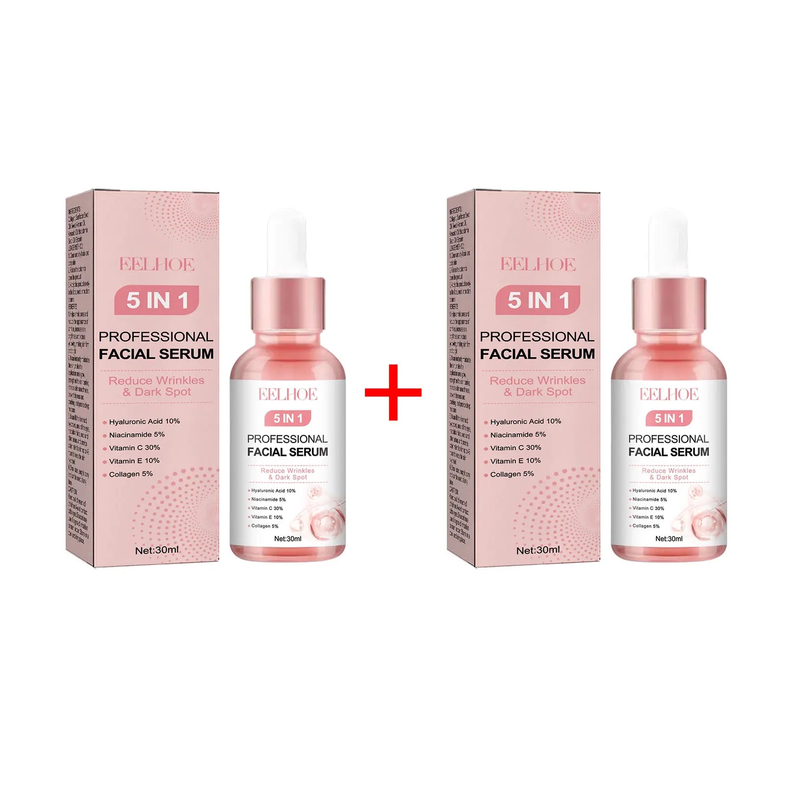 EELHOE 5 in 1 Face Serum Anti-Wrinkle Collagen Boost Fade Dark Spots Remover Whiten Skin Moisturizing Face Pore Shrinking Serum 30ml / 60ml