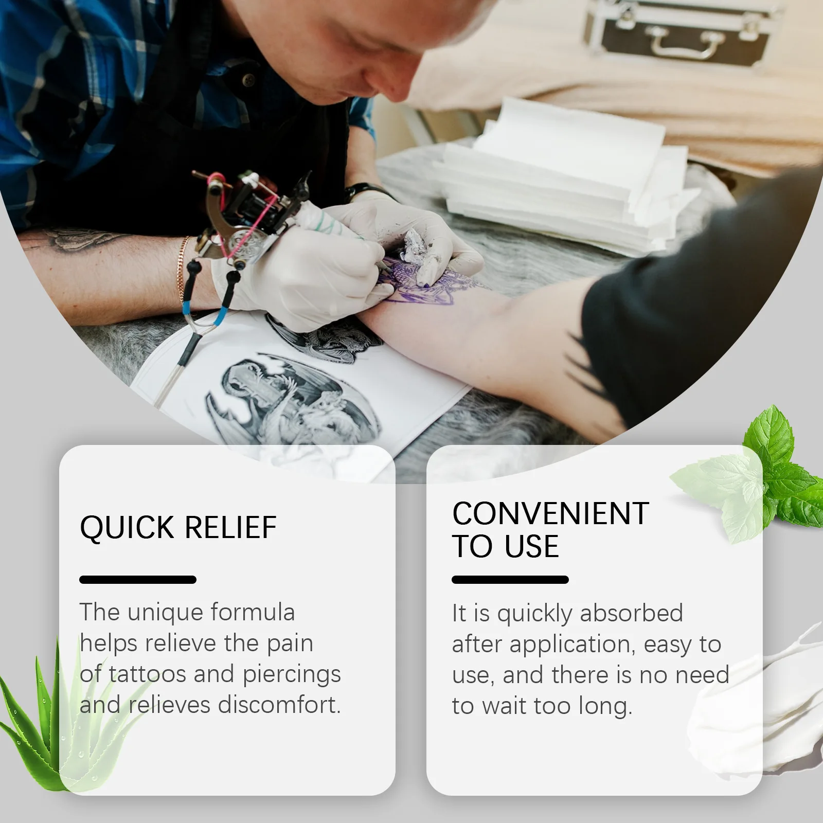 Infused with peppermint and aloe vera extracts, it delivers instant cooling relief to burning and stinging sensations post-tattooing. Reduces redness and inflammation, making it ideal for large-scale color tattoos, with soothing effects lasting up to 8 hours.