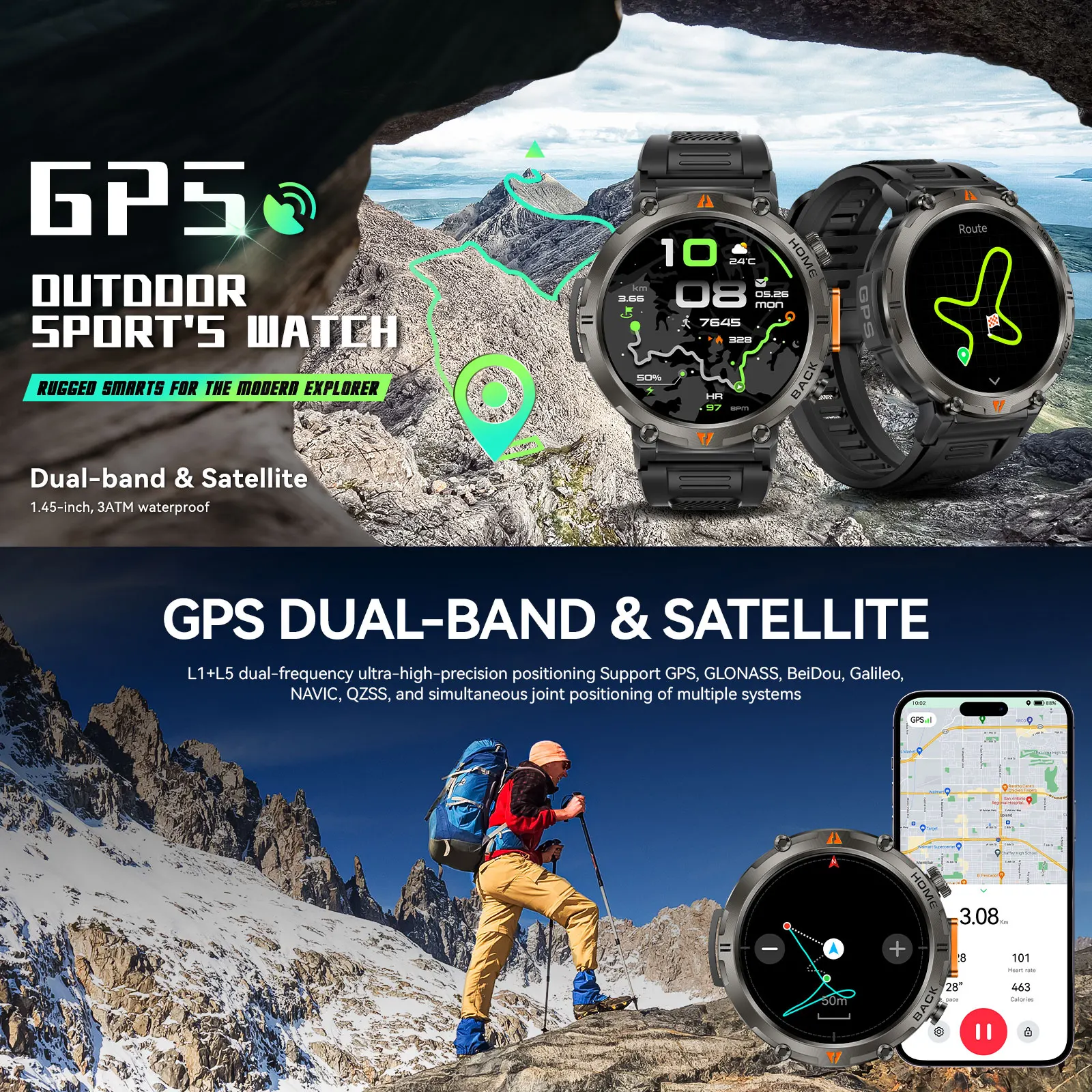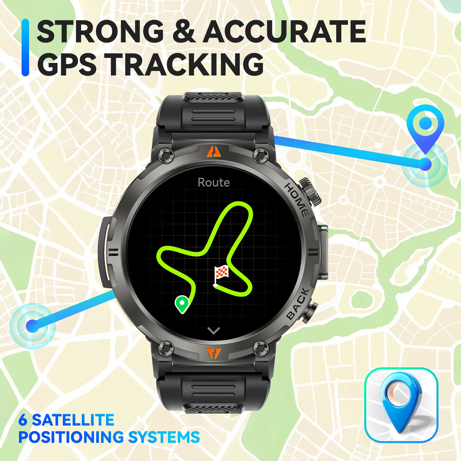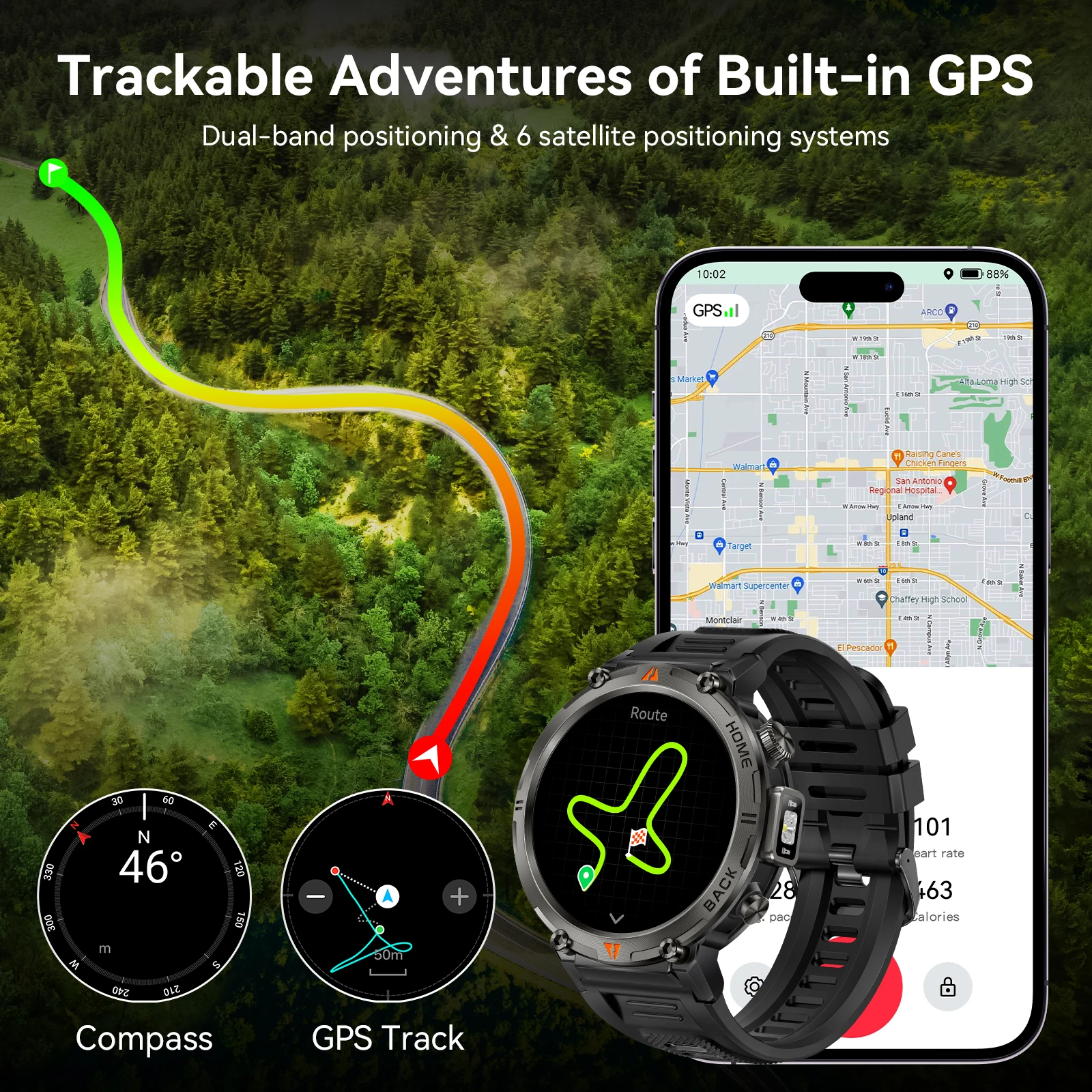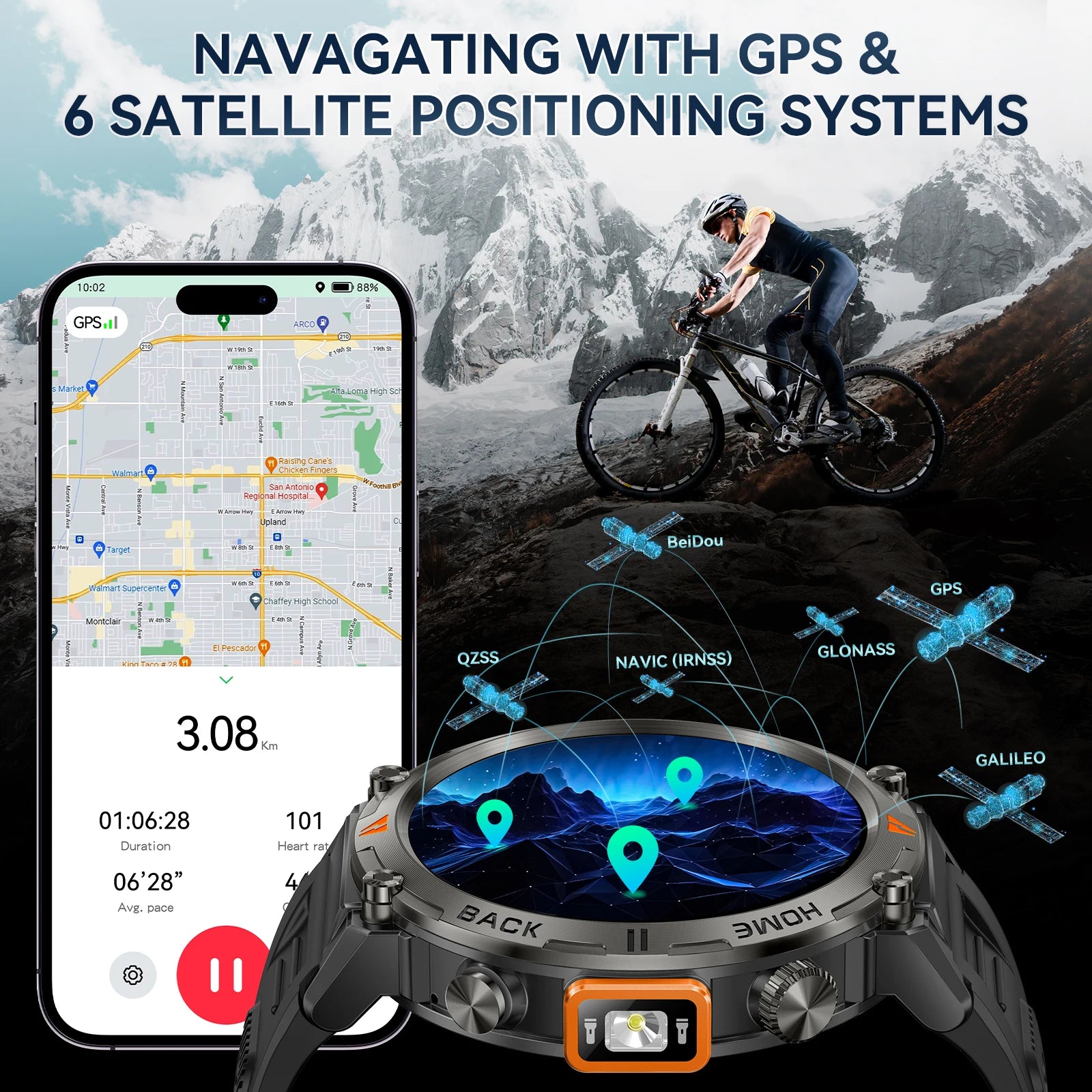 EIGIIS KE3Pro Original Smart Watch for Men with LED Flashlightwith Heart Rate Sleep fitness Monitor with GPS Multiple Sport Mode