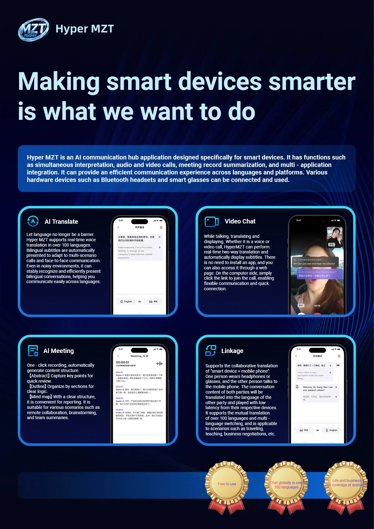 *AI intelligent translation and real-time simultaneous explanation: Global communication is achieved through AI-driven translation, and language barriers are bridged in real time. (NEED Customized)