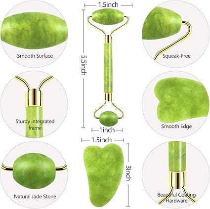 - 【PERFECT BEAUTY GIFT WITH 100% SATISFACTION GUARANTEE】: Our Jade Roller & Gua Bundle Package is a Top Quality self skincare tool which is perfecting for gifting at any occasion or keeping for yourself that will cool, tighten, and de-puff your face in seconds as it massages. No Reason Exchange, Replacement or Refund. The Best Customer Support | Our company culture is focused on Customer Care and Customer Experience. That's why we offer you 24/7/365 Support for any questions you might have.