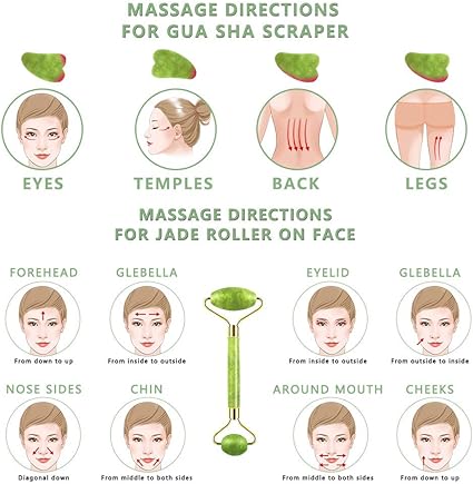 - 【Easy To Use 】:The jade roller and gua sha set is a facial skin massager for the face and body. The combination of the double roller design of the facial roller can close pores, prevent wrinkles,and it can improve general healt. The jade roller releases tension, improves circulation, stimulates the lymphatic system, reduces puffines and wrinkles, it can help anti-aging and it can rejuvenate the skin.