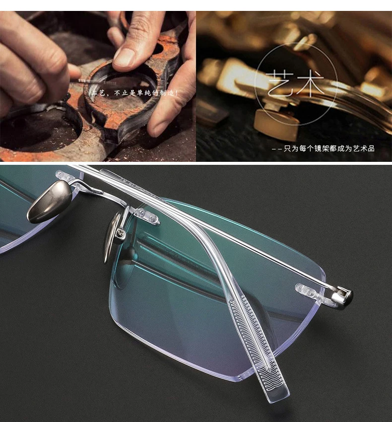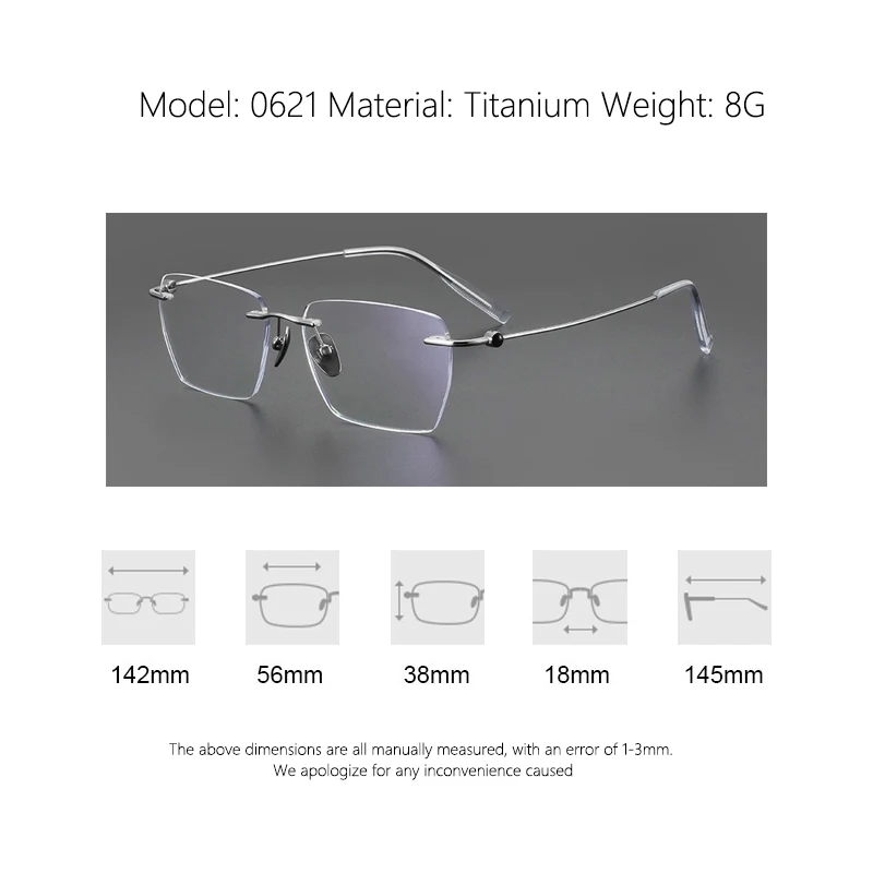 Fashion Rimless Business Eyewear Ultra Light Pure Titanium Spectacle Big Size Luxur Glasses Men Optical Prescription Eyeglasses