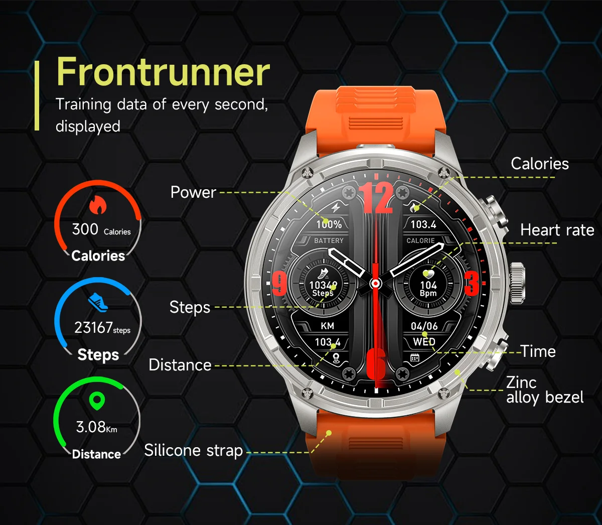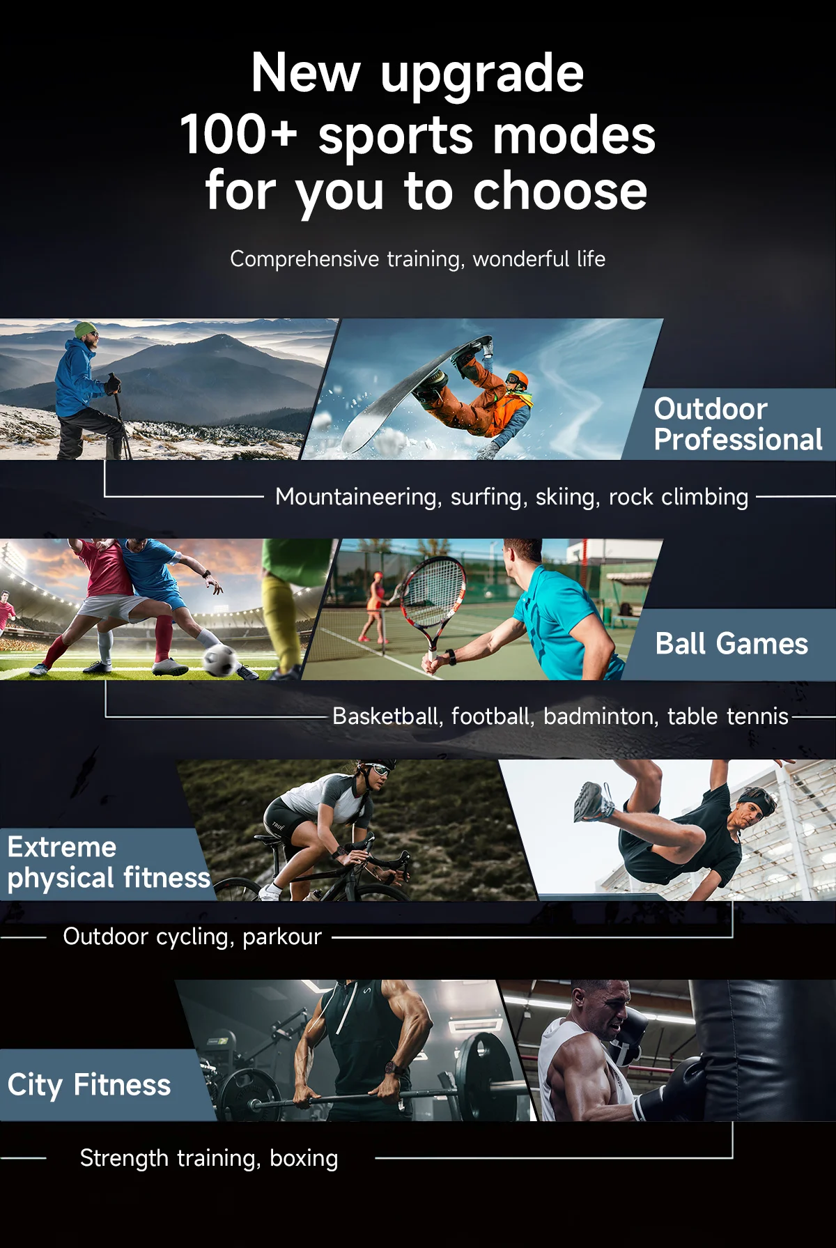 All-Day Activity Tracking( Steps, calories, distance, Goal ), lP68 waterproof, 100+ Exercise