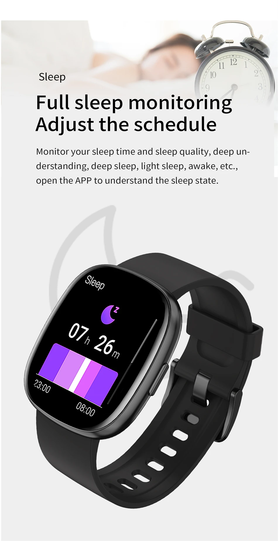 Watch features 4: Sleep monitoring: Accurately monitor the sleep characteristics of various periods such as deep sleep and light sleep to help you adjust your sleep habits and obtain higher sleep quality.