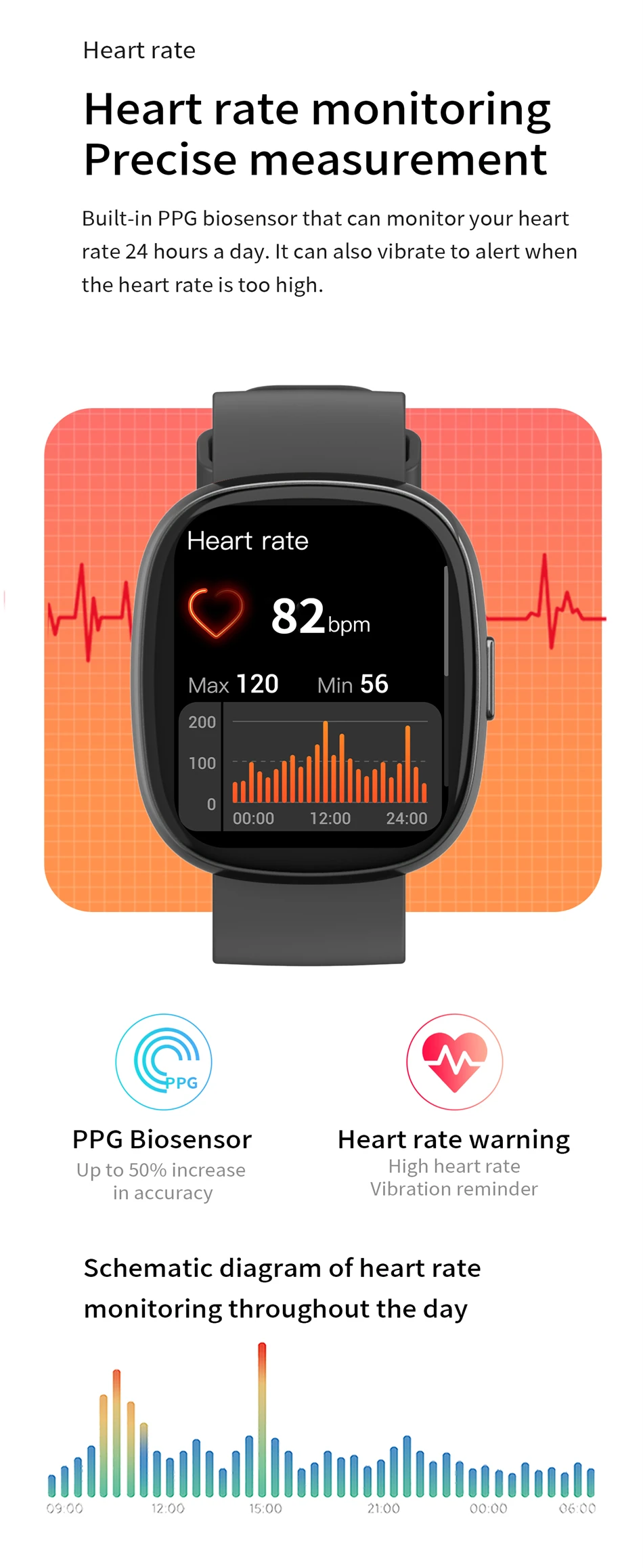 Watch features 3: Blood oxygen monitor: Confirm whether the blood oxygen saturation is low or high by monitoring blood oxygen, allowing you to keep track of body changes at any time