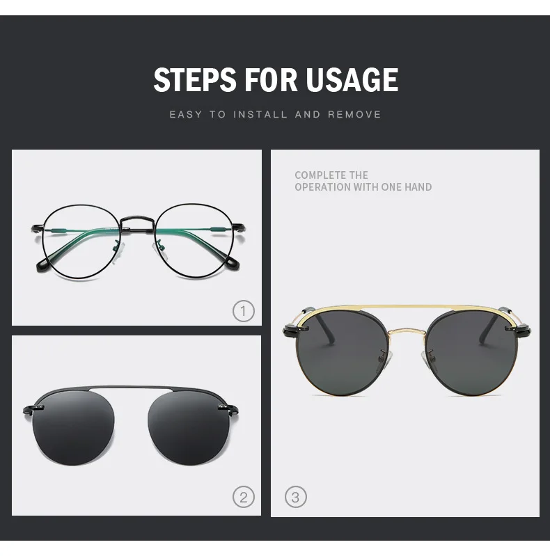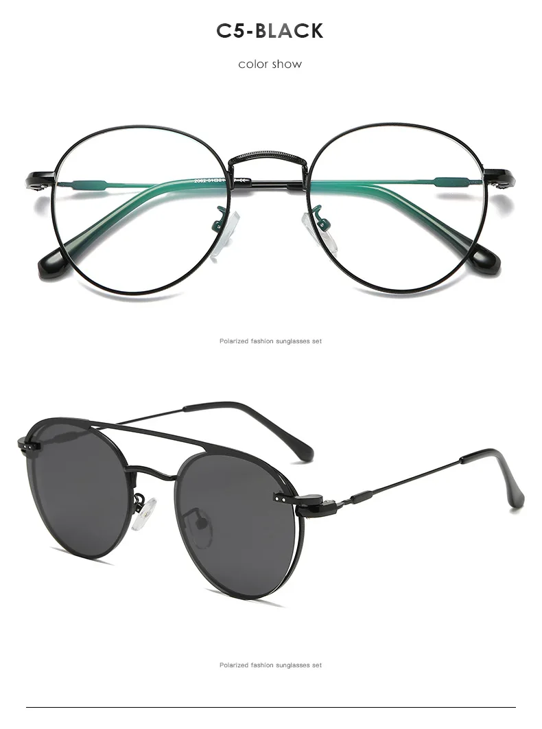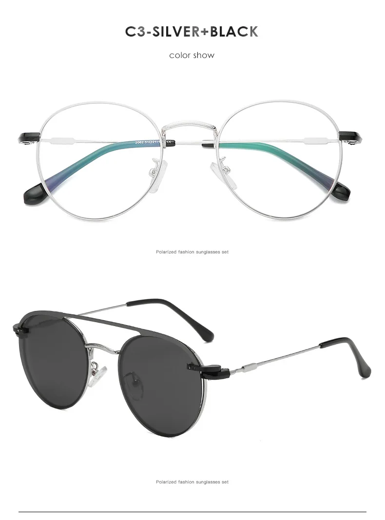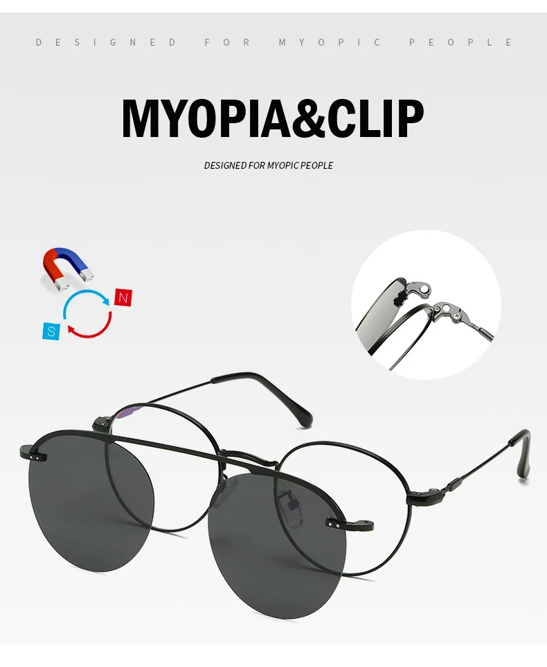Full Rim Optical Eyeglasses Frame with Magnetic Clip-on Alloy Glasses Optical Prescription Spectacles Eyewear 2062