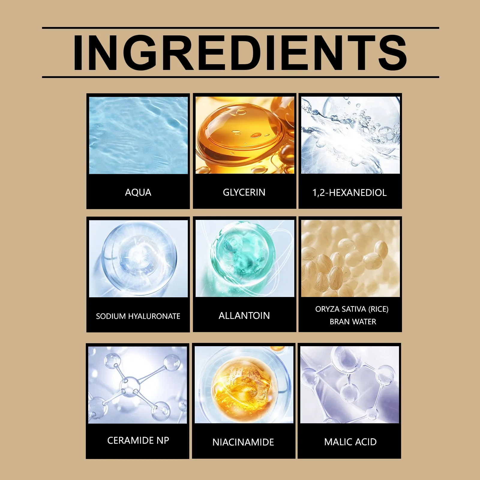 Ingredient: ORYZA SATIVA (RICE) BRAN WATER,NIACINAMIDE,CERAMIDE EOS